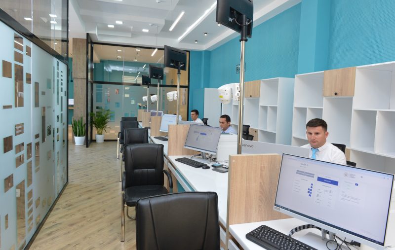 Ən son texnoloji yeniliklər, elektron növbə və müasir xidmət avadanlıqları ilə təmin olunan mərkəzə müraciət edən vergi ödəyicilərinə xidmət prosesi əyani şəkildə göstərilib.