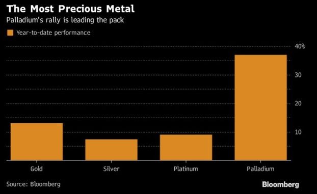 "Marja" xəbər verir ki, dünya birjalarında Palladium qiymətləri, ötən həftə 2001-ci ildən bu yana olan ən yüksək səviyyəsinə çatıb.