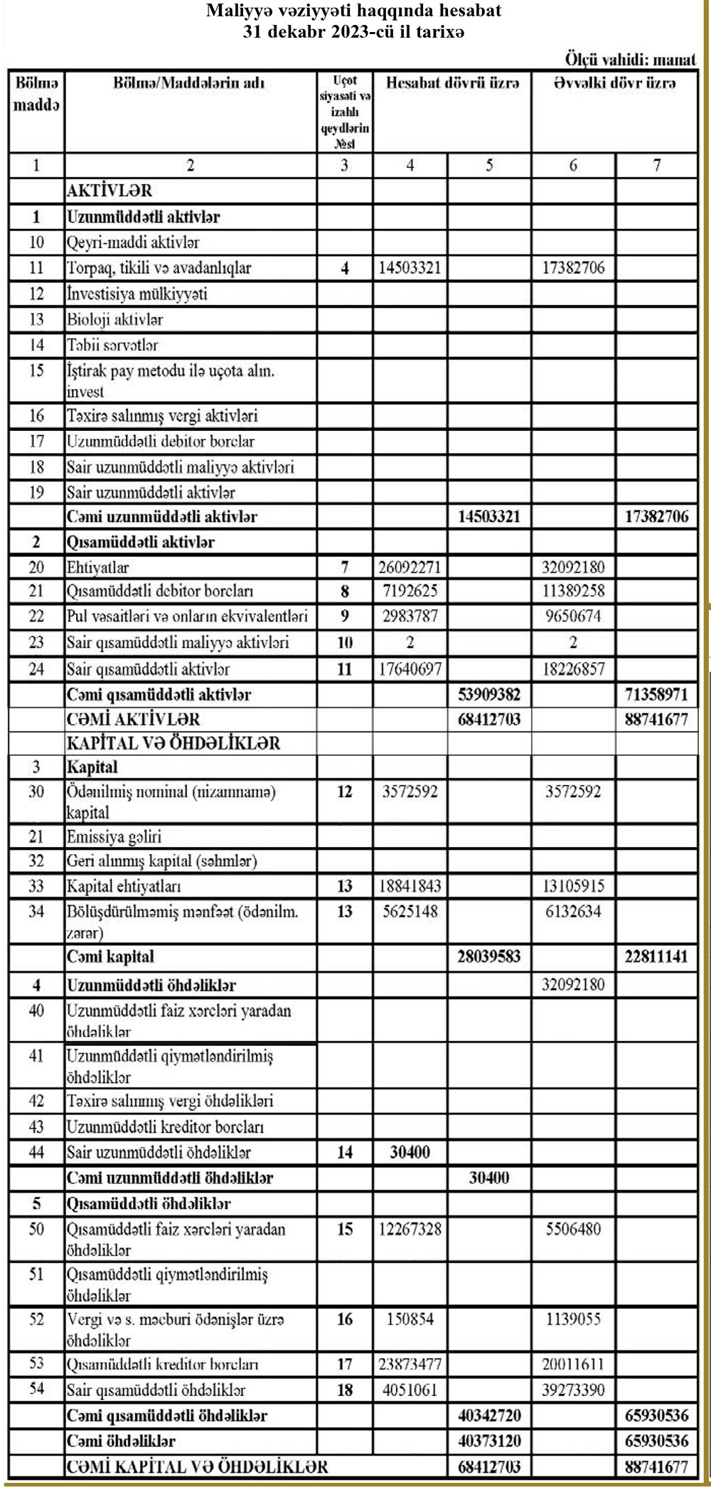 "Gəncə Avtomobil Zavodu" İB 31 dekabr 2023-cü il tarixində 68 milyon 413 min manat cəmi aktivlərə malik olub. İstehsalat Birliyi 2022-ci ilin sonunda 88 milyon 742 min manat cəmi aktivlərə malik idi.