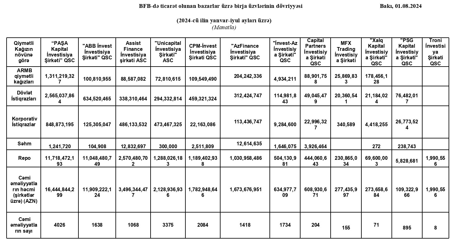 Bakı Fond Birjası tərəfindən 2024-cü ilin yanvar-iyul ayları üzrə açıqlanan hesabata əsasən, "PAŞA Kapital" 16 milyard 445 milyon manatdan artıq dövriyyə həcmi ilə Azərbaycan bazarının ən iri investisiya şirkəti olaraq mövqeyini daha da gücləndirib. Həmçinin hesabat dövrü ərzində şirkət Mərkəzi Bankın notları, Dövlət istiqrazları, Repo bazarları üzrə aparılan əməliyyatların həcminə görə yerli bazarın lideri kimi fərqləndirilib.
