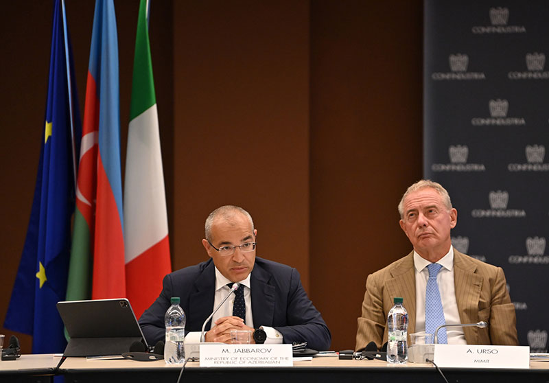 İqtisadiyyat naziri Mikayıl Cabbarov ölkələrimiz arasında münasibətlərin strateji xarakter daşıdığını qeyd edərək, İtaliyanın Azərbaycanın ən böyük ticarət tərəfdaşı olduğunu vurğulayıb. Bildirilib ki, ölkəmiz İtaliya ilə çoxşaxəli iqtisadi əməkdaşlığın möhkəmləndirilməsinə böyük əhəmiyyət verir və bunun nəticəsi olaraq ölkə iqtisadiyyatının müxtəlif sahələrində, o cümlədən işğaldan azad olunan ərazilərdə çoxsaylı İtaliya şirkətləri uğurla fəaliyyət göstərir. Vurğulanıb ki, dəyimi masa çərçivəsində aparılan müzakirələr və əldə edilən razılaşmalar əlaqələrimizi daha da gücləndirəcək və yeni imkanlar açacaqdır.