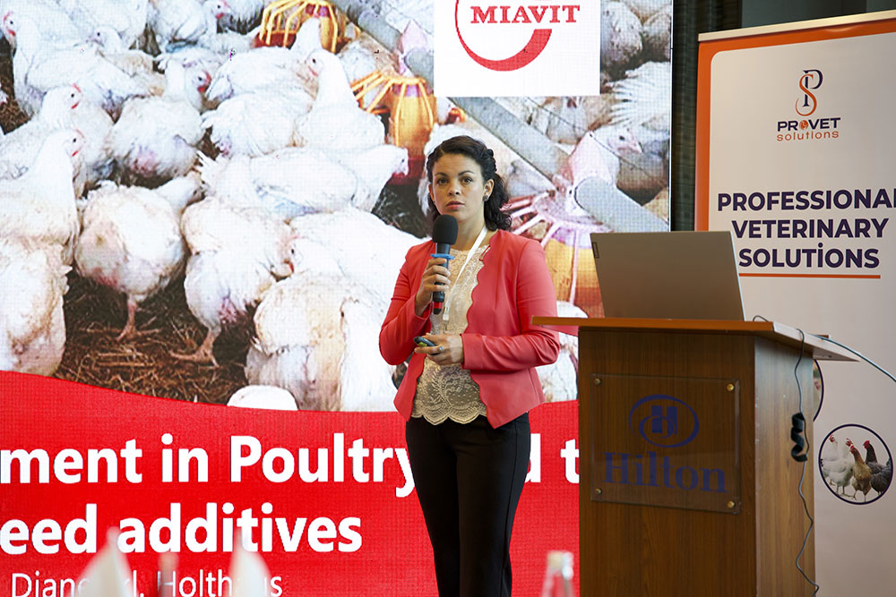 Almaniyalı ekspert Djanet Holthaus bildirib ki, quşların mədə-bağırsaq sistemi bədən ölçüsünə nisbətdə çox qısadır. Buna görə də quşlara tez həzm olunan və hərəkətə imkan yaradan, tərkibində az kal lif olan qidalar verilməlidir. Xüsusi tərtib olunmuş qida tez həzm olunaraq quşların çəki artımına imkan yaradır. Ekspert quşların həzm orqanlarının sağlamlığını təmin edən elementlər, fitogen məhsullar və yeni nəsil enzimlər barədə danışıb. Almaniyalı mütəxəssis doğru olmayan qidanın yaratdığı problemlərə də diqqət çəkərək, broyler və ev quşlarının sağlam bəslənməsi üçün “Miavit” şirkətinin yem və yem əlavələrində müxtəlif qidalı elementlər balansının necə qorunduğu barədə ətraflı məlumat çatdırıb.