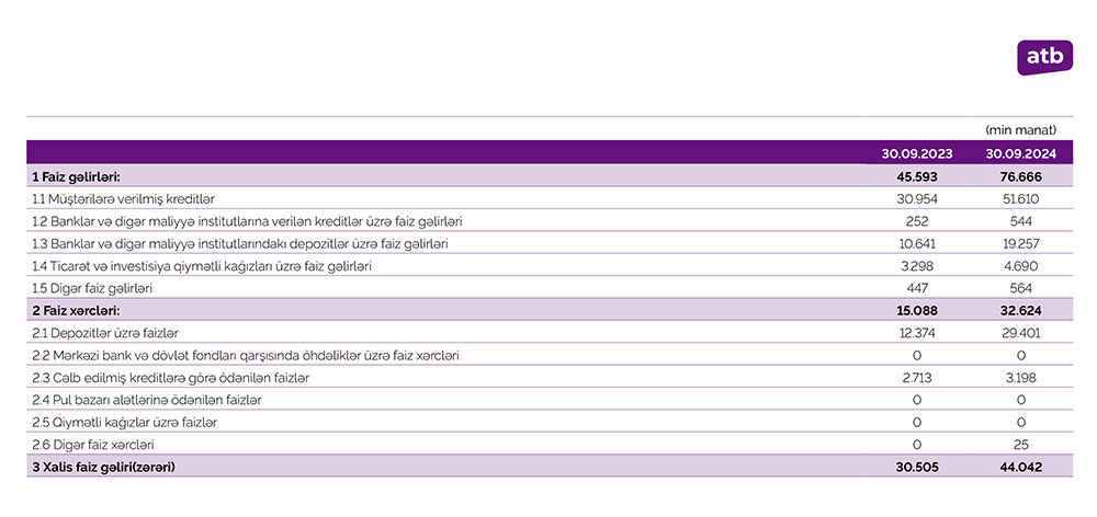 2024-cü ilin doqquz ayında Azər Türk Bank 18,3 milyon manatdan çox xalis mənfəət əldə edib.