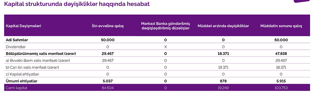 01 oktyabr 2024-cü il tarixində Bankın məcmu kapitalının həcmi 96,3 milyon manat olub.