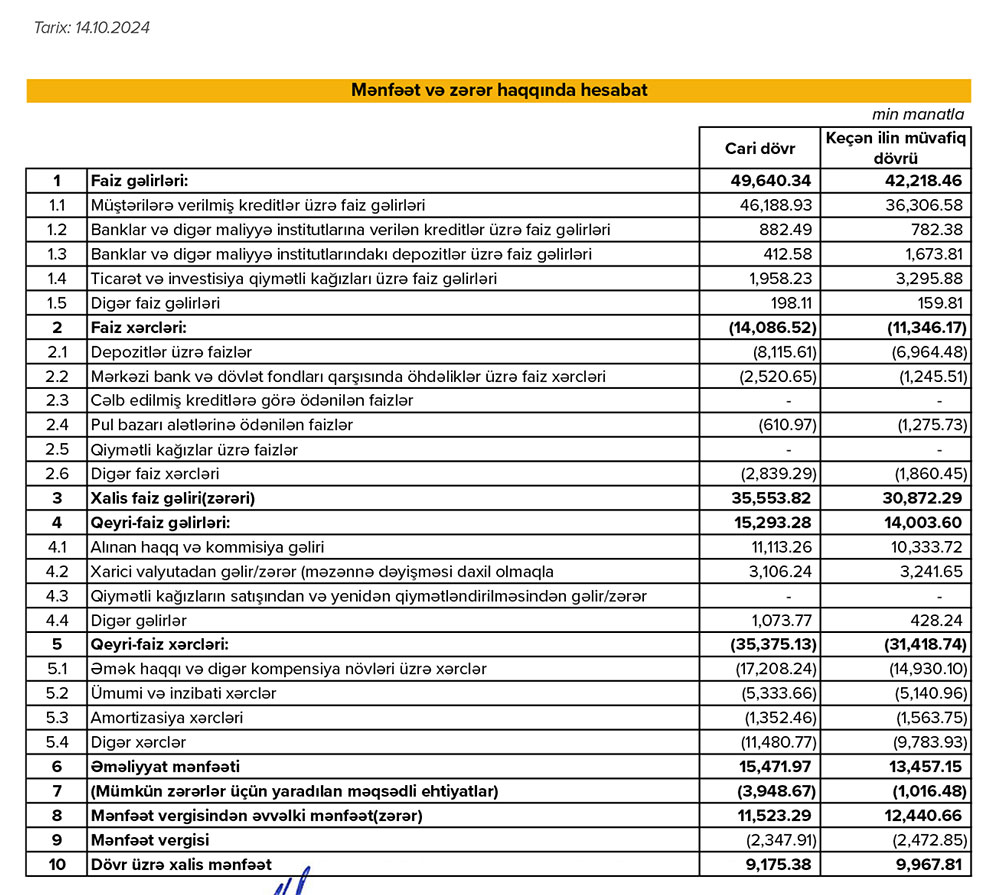 2023-cü ilin 9 ayı ilə müqayisədə 2024-cü ilin 9 ayında "Expressbank"ın əməliyyat mənfəəti 2 milyon 15 min manat və ya 13% artıb.