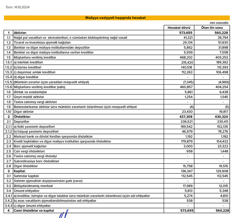 2023-cü ilin sonu ilə müqayisədə 2024-cü ilin 9 ayı ərzində "Expressbank"ın cəmi aktivləri 13 milyon 427 min manat və ya 2,4% artaraq 30 sentyabr 2024-cü il tarixində 573 milyon 655 min manat təşkil edib.