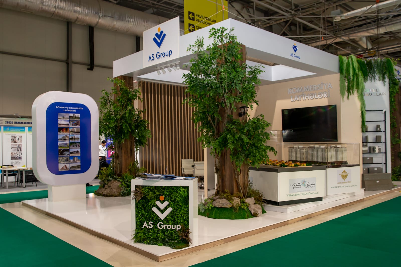 Sərgidə şirkət “Qarabağda bərpa edilən ərazilər” və “Kommersiya layihələrimiz” adlı iki hissədən ibarət stendlə iştirak edir. Stendin “Qarabağda bərpa edilən ərazilər” hissəsində “AS Group” işğaldan azad edilən torpaqlarımızda ilk bərpa edilən ərazi sayılan Zəngilan rayonun Ağalı kəndinin və Füzuli rayonunun Dövlətyarlı kəndinin maketlərini, bu layihələrə aid foto və video materiallarını nümayiş etdirir.