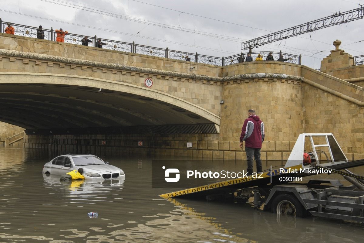 Belə ki, görüntülərdən göründüyü kimi şirkət əməkdaşı Elməddin Baxışov suda qalan avtomobilin təhlükəsiz şəkildə çıxarılması üçün yağan yağışa və çətin şəraitə baxmayaraq işinin öhdəsindən gəlib.