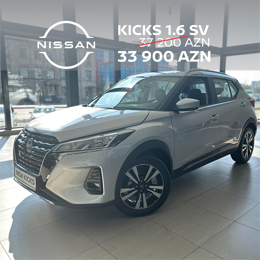 Payız endirimləri kampaniyası çərçivəsində “Nissan KICKS” 1.6 SV avtomobilini 3 min 300 manat endirimlə 33 min 900 manat qiymətə əldə etmək mümkündür.