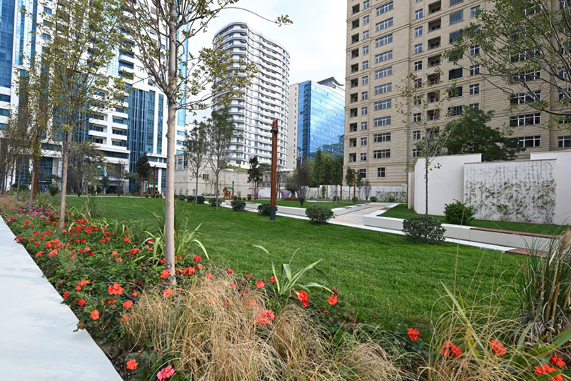 Bildirilib ki, yeni salınan parkda sakinlərin və qonaqların asudə vaxtlarının səmərəli təşkili üçün qısa müddətdə gözəl şərait yaradılıb. Ərazidə asfalt örtüyü ləğv edilərək müasir tələblərə cavab verən piyada yolları salınıb. Yeni parkda yaşıllaşdırma, işıqlandırma işləri görülüb, müasir oturacaqlar quraşdırılıb, uşaq əyləncə zonası yaradılıb.