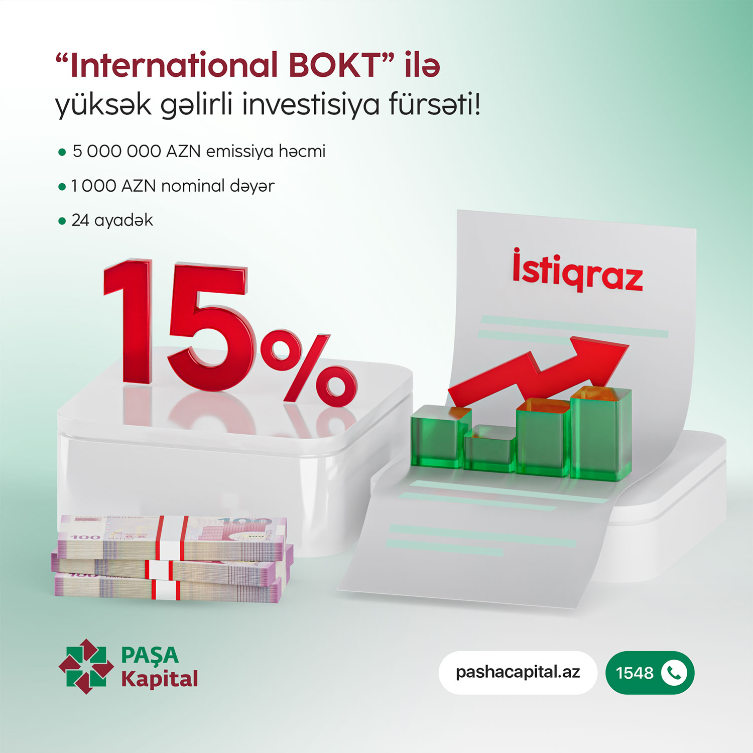 "INTERNATIONAL" Bank Olmayan Kredit Təşkilatı tərəfindən buraxılan bu yüksək gəlirli istiqrazlar investorlar üçün sərfəli gəlir şərtləri ilə rəqabətli maliyyə imkanları yaradacaq.