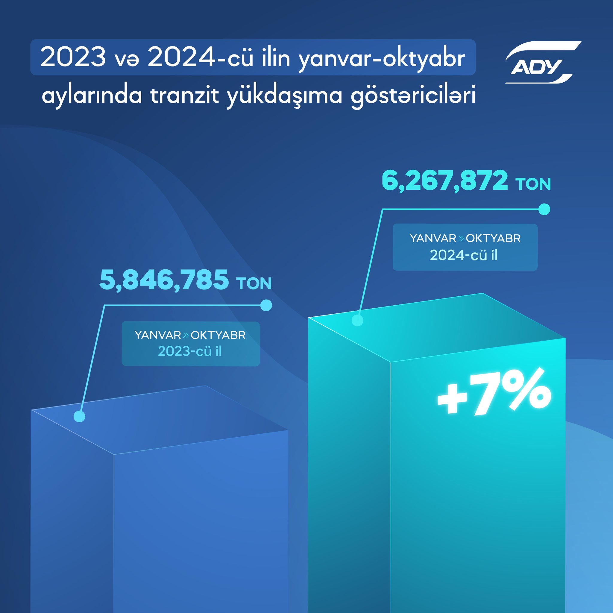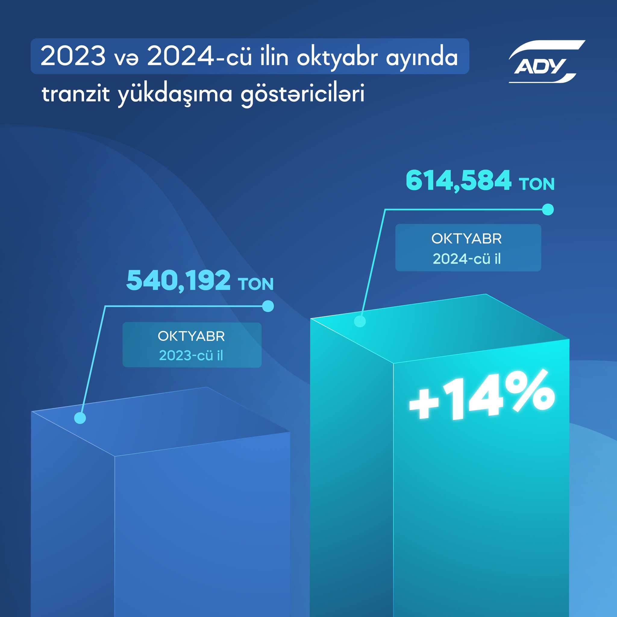 ADY-nin məlumatına görə, 2024-cü ilin oktyabr ayında daşınan tranzit yüklərin həcmində isə 2023-cü ilin oktyabr ayına nisbətən 14% artım qeydə alınıb.