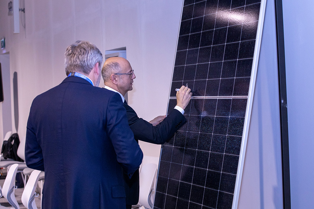 Sonra isə simvolik olaraq stansiyanın ilk günəş paneli imzalanıb. İmzalama prosesinə SOCAR və Azərbaycan İnvestisiya Şirkəti də qoşulub. Şəfəq GES-də illik təxminən 500 milyon kilovat-saat elektrik enerjisi istehsalı gözlənilir ki, bu da ildə 120-150 milyon kubmetr təbii qaza qənaət, 260-330 min ton karbon emissiyasının azaldılması deməkdir.