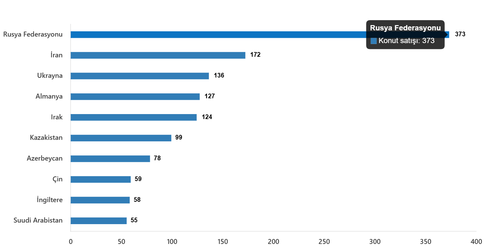 Türkiyədə ən çox Rusiya vətəndaşları ev alıb.2024-cü ilin 10 ayı ərzində (yanvar-oktyabr) Azərbaycan vətəndaşları Türkiyədə 682 ev əldə ediblər.