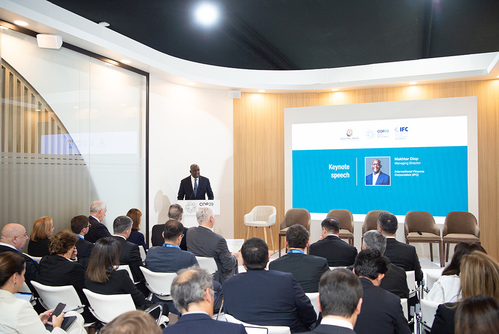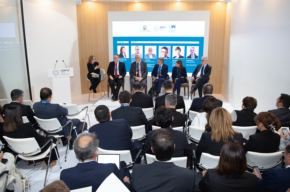 Azərbaycan Mərkəzi Bankı və BMK COP29 çərçivəsində Maliyyə, İnvestisiya və Ticarət Günündə tədbir təşkil edibAzərbaycan Respublikasının Mərkəzi Bankı Beynəlxalq Maliyyə Korporasiyası (BMK), Dayanıqlı Bankçılıq və Maliyyə Şəbəkəsi (DBMŞ), Dayanıqlı Maliyyə üzrə Beynəlxalq Platforma (DMBP), Birləşmiş Millətlər Təşkilatının İnkişaf Proqramının (BMT İP) tərəfdaşlığı və Birləşmiş Millətlər Təşkilatının Ətraf Mühit Proqramının Maliyyə Təşəbbüsünün (BMTƏMP MT) dəstəyi ilə “Dayanıqlı maliyyə taksonomiyalarının qarşılıqlı əlaqəliliyi və müqayisəliliyinin inkişafına dair Yol Xəritəsi”ni təqdim edib. Yol Xəritəsi rəsmi olaraq COP29 çərçivəsində Maliyyə, İnvestisiya və Ticarət Günündə Mərkəzi Bank və BMK tərəfindən təşkil olunmuş “Dünya üzrə dayanıqlı maliyyənin inkişafı: Dayanıqlı maliyyə taksonomiyalarının qarşılıqlı əlaqəliliyi və müqayisəliliyi üzrə Yol Xəritəsi” adlı mühüm tədbirdə elan olunub.