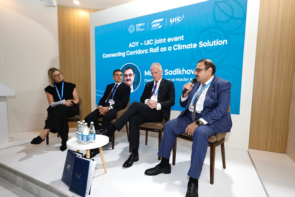 ADY sədri Rövşən Rüstəmov tədbirdə “Azərbaycanın regional və qlobal iqlim məqsədlərinə nail olunmasında Azərbaycanın rolu: Ölkənin nəqliyyat strategiyasında dəmir yollarının rolu” mövzusunda çıxış edərək Azərbaycan Dəmir Yollarının qlobal iqlim çağırışlarına uyğun olaraq 2023-cü ildə BMT-nin Qlobal Sazişinə üzv olması, beynəlxalq GRI və SASB standartları əsasında ADY-də müvafiq diaqnostikanın aparılması və bu diaqnostikanın nəticəsi olaraq ilk dəfə “Dayanıqlılıq hesabatı”nın hazırlanaraq ictimaiyyətə təqdim olunması barədə məlumat verib.