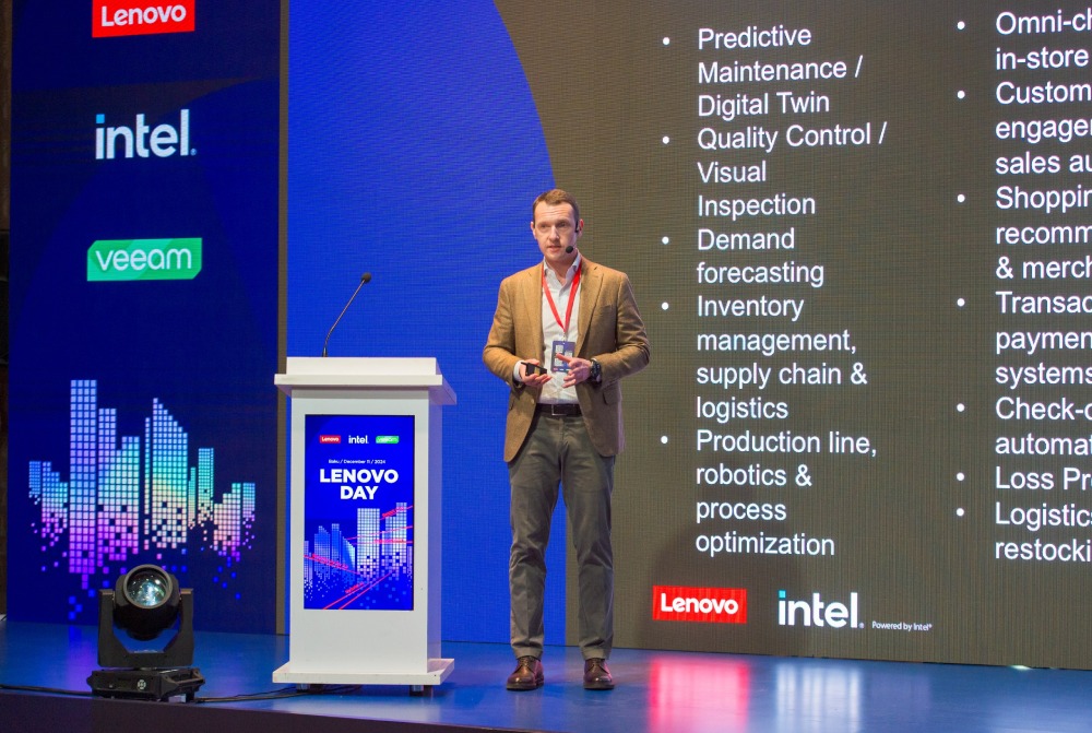 Forumun proqramında süni intellekt tətbiqlərinin düzgün işləməsini və məlumatların qorunmasını təmin edən "Lenovo" və "Veeam" şirkətlərinin birgə infrastruktur həllərinə ayrıca sessiya həsr olunub. "Veeam"ın qabaqcıl imkanlarını inteqrasiya edərək, "Lenovo" müxtəlif sistemlərdə və mühitlərdə məlumatların ehtiyat nüsxəsinin çıxarılması, bərpası və monitorinqi proseslərini optimallaşdırır. Bu tərəfdaşlıq həm kritik məlumatları etibarlı şəkildə qorumaq üçün "Lenovo"nun İT infrastrukturunun qabiliyyətini gücləndirir, həm də istənilən biznesin İT əməliyyatlarının səmərəliliyini və dayanıqlığını artırmağa kömək edir.