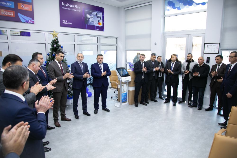 Təntənəli açılışda iştirak edən bankın rəhbərliyi, yüksək standartlara cavab verən yeni filialın açılışını bildirən rəmzi qırmızı lenti kəsərək filialı müştərilərin istifadəsinə verib. Regionlarda filial şəbəkəsininnin genişləndiirlməsinin "Bank Respublika"nın strateji məqsədlərindən biri olduğunu qeyd edən "Bank Respublika"nın rəhbərliyi, yeni filialda da biznesin bütün istiqamətləri üzrə iş adamlarına dəstək olunacağını, eləcə də əhaliyə müasir bank məhsullarının sərfəli şərtlərlə təqdim ediləcəyini bildirib.