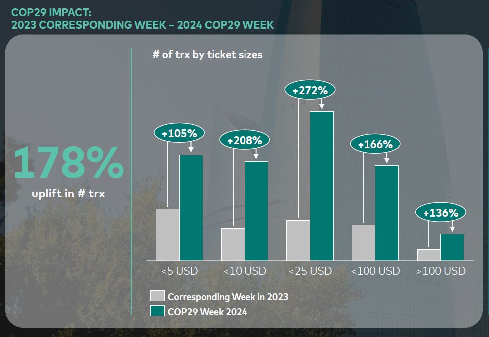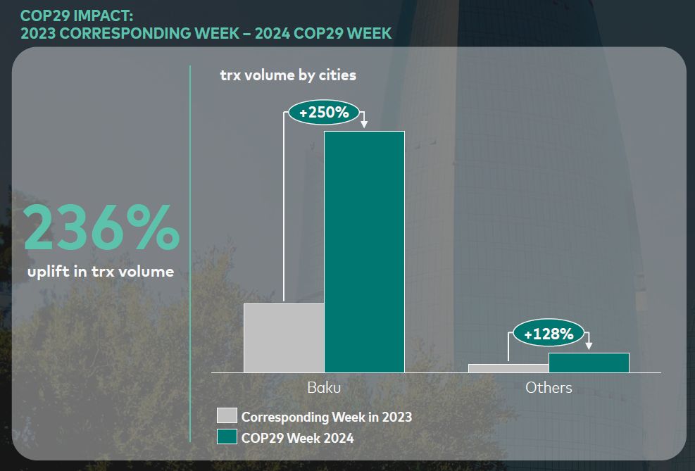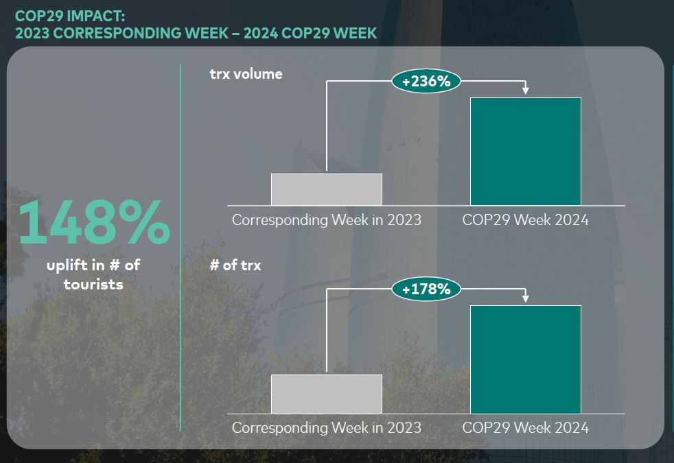 Mastercard tərəfindən dərc edilən məlumatlar COP29-un Azərbaycan iqtisadiyyatına mühüm təsirini göstərir.Ötən ay Bakıda keçirilmiş 29-cu BMT İqlim Dəyişikliyi Konfransı (COP29) Azərbaycanın iqtisadi inkişafına mühüm təkan verərək əhəmiyyətli təsirlə yadda qalıb.