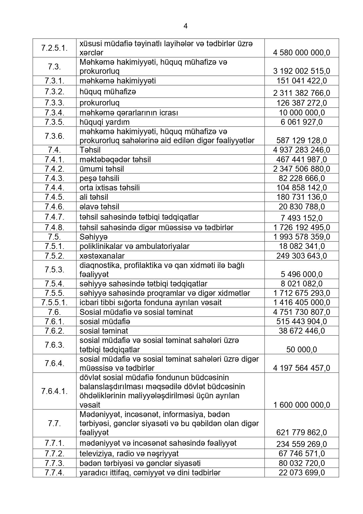 Bundan başqa, dövlət başçısı sözügedən qanunun tətbiqi ilə bağlı bir sıra məsələlər barədə fərman imzalayıb. Fərmana əsasən, funksional təsnifatın bölmə və köməkçi bölmələri səviyyəsində ayrılan vəsaitin məbləği inzibati təsnifata uyğun olaraq dövlət büdcəsindən maliyyələşdirilən, maliyyə yardımı alan təşkilatlar və tədbirlər üzrə təsdiqlənib.
