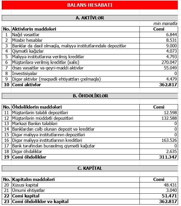 "Bank BTB"nin maliyyə vəziyyəti açıqlanıb