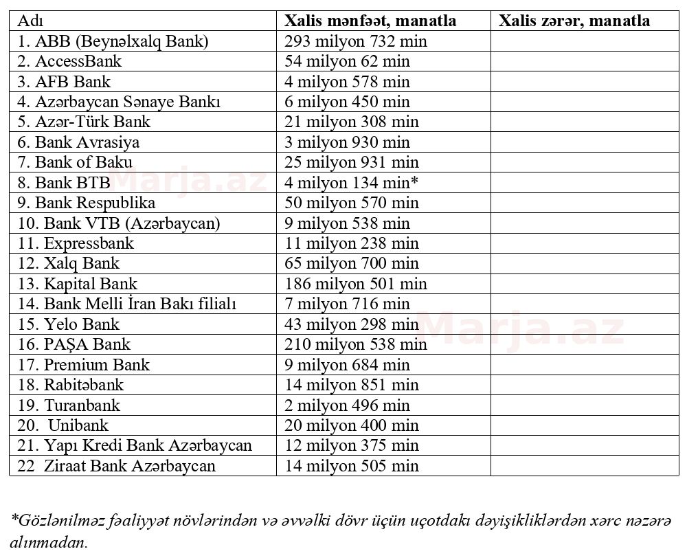 22 bank xalis mənfəət açıqladı - SİYAHI