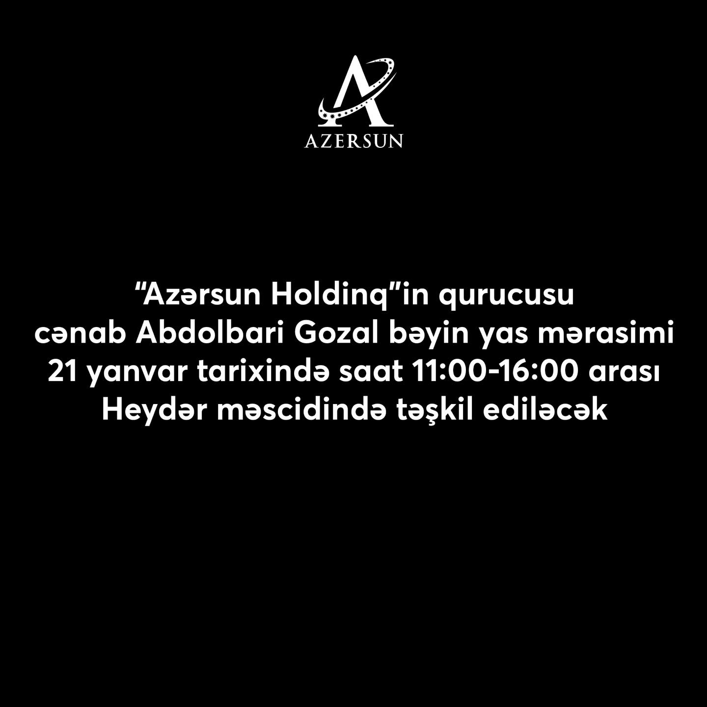 “Azərsun Holdinq”in qurucusu Abdolbari Gozalın yas mərasimimin keçiriləcəyi vaxt məlum olub.
