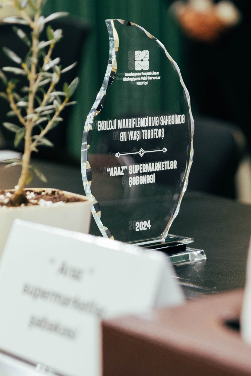 Şirkət 2024-cü ildə ekologiya və təbiətin mühafizəsi sahəsində həyata keçirdiyi layihələrə görə seçilənlərdən olub. Mükafat ekologiya və təbii sərvətlər naziri Muxtar Babayev tərəfindən “Araz” supermarketlər şəbəkəsinin İdarə Heyətinin sədri Rəşad İbrahimova təqdim olunub. Mükafatlandırılma mərasimində çıxış edən M.Babayev bildirib ki, “Araz” supermarketlər şəbəkəsi nazirliklə sıx əməkdaşlıq edən, həyata keçirilən layihələrdə fəal iştirak edən ən yaxşı tərəfdaşlardan biridir. O, şirkətin təbiətin qorunması və ətraf mühitin mühafizəsi istiqamətində həyata keçirdiyi layihələri yüksək qiymətləndirib.