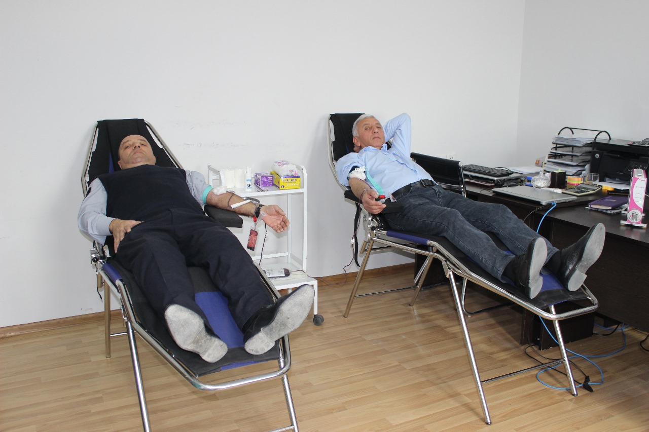 Aksiya Mərkəzi Qan Bankının xüsusi tibb briqadasının həkim hemotoloqları tərəfindən donorların sağlamlıq vəziyyəti yoxlanıldıqdan sonra onlardan qan götürülüb.