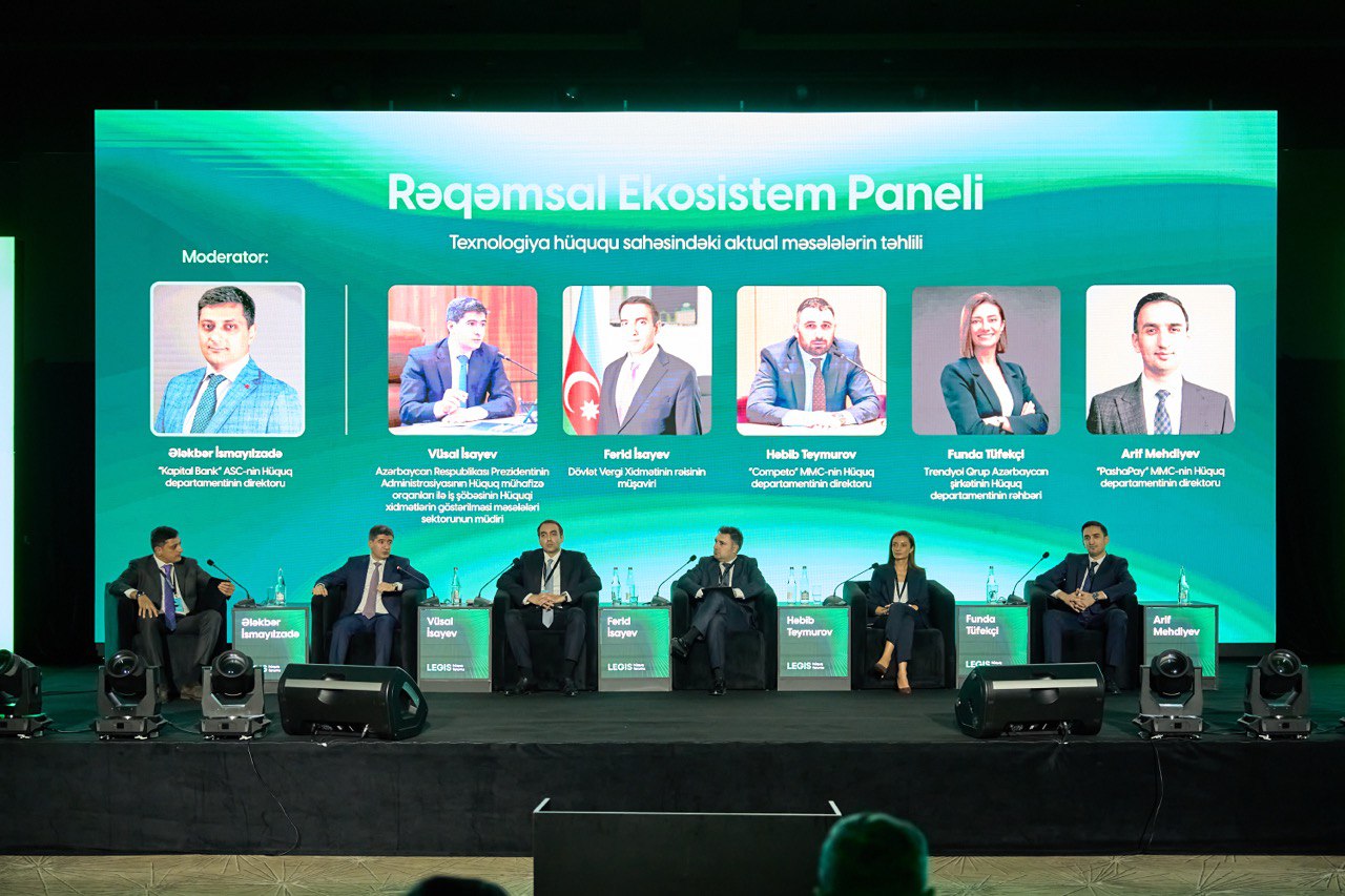 Bununla yanaşı, Rəqəmsal Ekosistem paneli maraqlı müzakirələr ilə yadda qaldı. Texnologiya hüququ sahəsindəki aktual məsələlərin təhlili sessiyasında hüquq və innovasiyanın kəsişmə nöqtələri araşdırıldı. “Kapital Bank”-nin Hüquq Departamentinin direktoru Ələkbər İsmayılzadənin moderatorluğu ilə baş tutan müzakirədə Azərbaycan Respublikası Prezidentinin Administrasiyasının Hüquq Mühafizə Orqanları ilə İş Şöbəsinin Hüquqi Xidmətlərin Göstərilməsi Məsələləri Sektorunun müdiri Vüsal İsayev, Dövlət Vergi Xidmətinin rəisinin müşaviri Fərid İsayev, “Competo”-nin Hüquq Departamentinin direktoru Həbib Teymurov, Trendyol Qrup Azərbaycan şirkətinin Hüquq Departamentinin rəhbəri Funda Tüfekçi və “PashaPay”-in Hüquq Departamentinin direktoru Arif Mehdiyev fikirlərini bölüşdülər. Paneldə ecosistem funksiallığı və vacibliyi, süni intellektin tətbiqi, hüquqi risklər və dövlət tənzimlənməsi müzakirə olundu. Bundan əlavə, spikerlar texnoloji inkişafı, innovasiyaları dəstəkləyən vergi təşviq mexanizmləri, vergi islahatlarının planlamasında ekosistem strategiyasının faydalı aspektləri, eləcə də rəqamsal ekosistemdə hüquqşunasın və hüquq departamentin mövcud və gələcək rolu barədə fikirlərini səsləndirdilər.