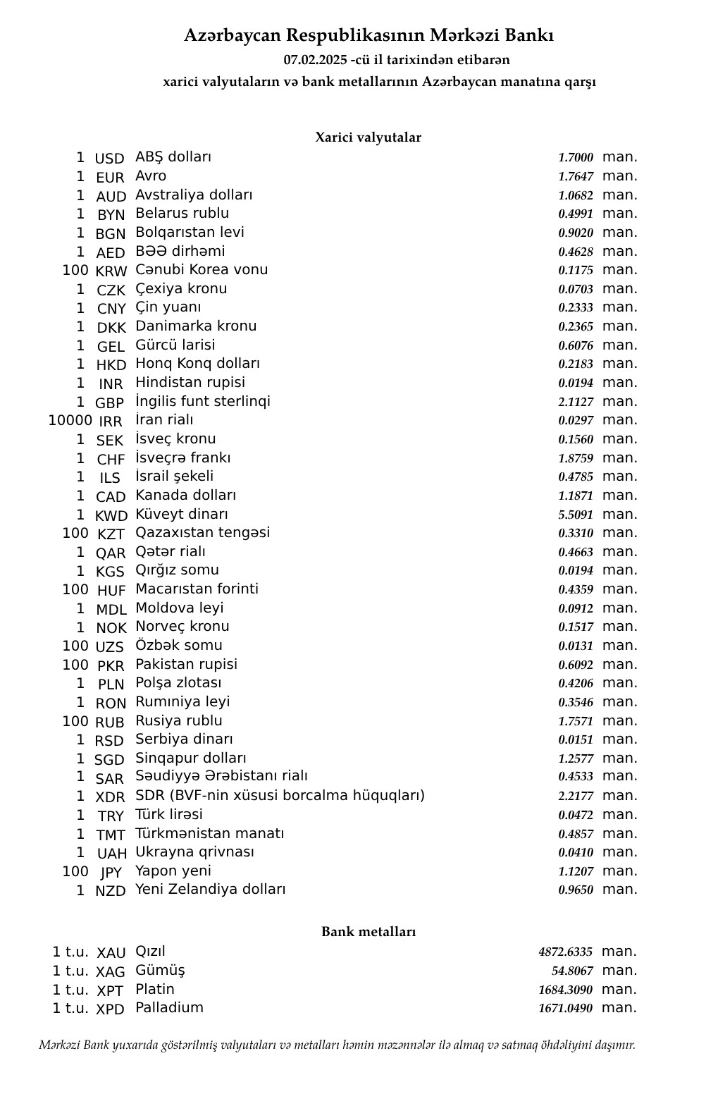 Dolların bazar ertəsi üçün rəsmi məzənnəsi müəyyən olunub