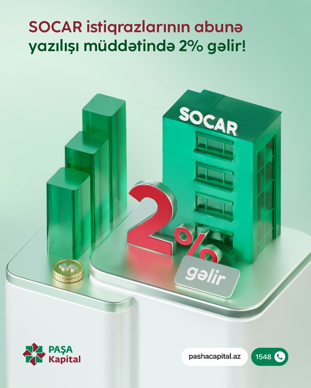 (®) PAŞA Kapital investorlara SOCAR istiqrazlarının abunə yazılışı müddətində illik 2% gəlir əldə etmək və komissiyasız xidmətdən faydalanmaq imkanı təqdim edir.