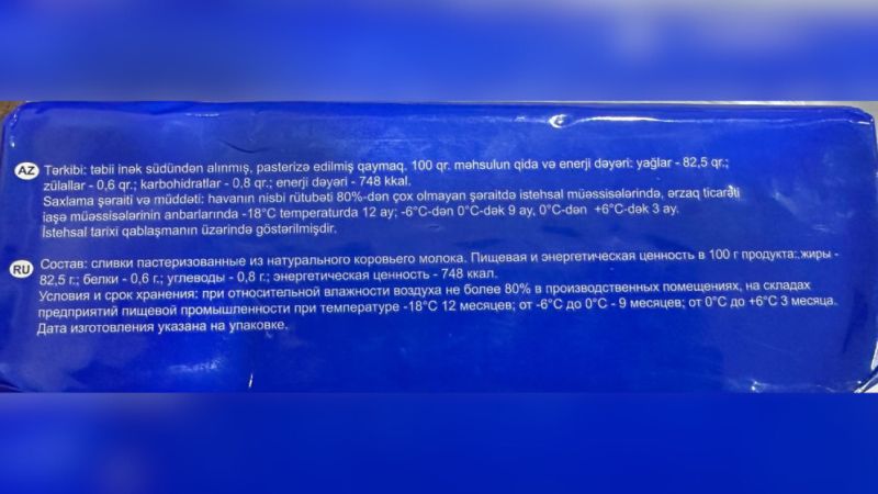 "Natural" “Tac” və "Selskoe" yağlarında uyğunsuzluqlar aşkarlanıb. İstehlakçılar aldadılıb və hüquqları pozulub.Azərbaycan Respublikasının Qida Təhlükəsizliyi Agentliyinin (AQTA) həyata keçirdiyi nəzarət tədbirləri çərçivəsində fiziki şəxs İmanverdiyev Elman Sahib oğlu tərəfindən istehsal olunan kərə yağı məhsullarından nümunələr götürülüb.