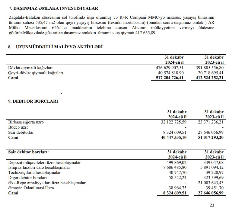 "PAŞA Həyat Sığorta"nın cəmi qiymətli kağızlara investisiyaları 2024-cü ildə 2023-cü illə müqayisədə 104 milyon 680 min manat və ya 25,4% artaraq 31 dekabr 2024-cü il tarixində 517 milyon 204 min manat təşkil edib.