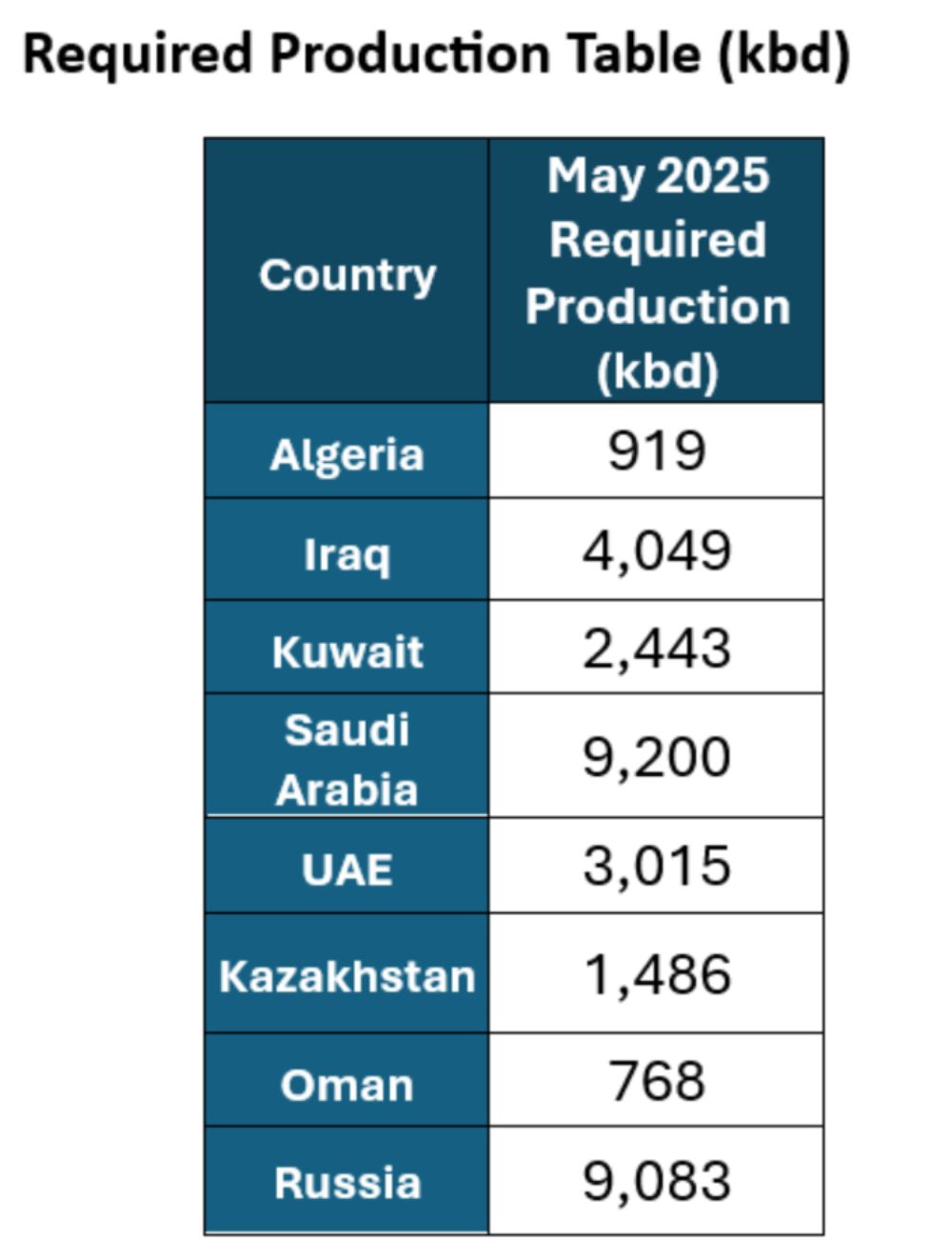Açıqlamaya görə, Səudiyyə Ərəbistanı, Rusiya, İraq, Birləşmiş Ərəb Əmirlikləri, Küveyt, Qazaxıstan, Əlcəzair və Oman iyun ayı üçün hasilat səviyyələrini müəyyən etmək üçün mayın 5-də bir araya gələcək.