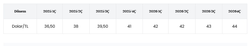 Qurumun dollar/TL proqnozları aşağıdakı kimidir:
