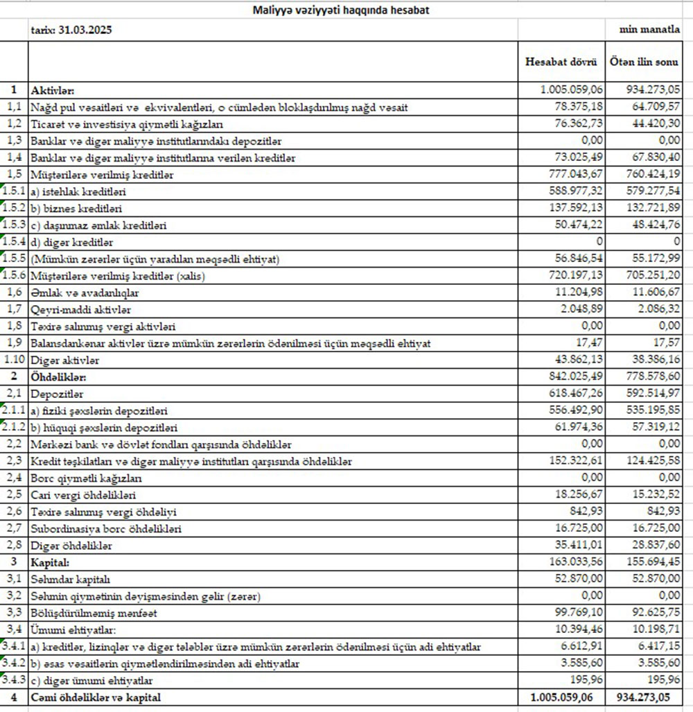 Daha bir bankın cəmi aktivləri 1 milyard manatı keçib