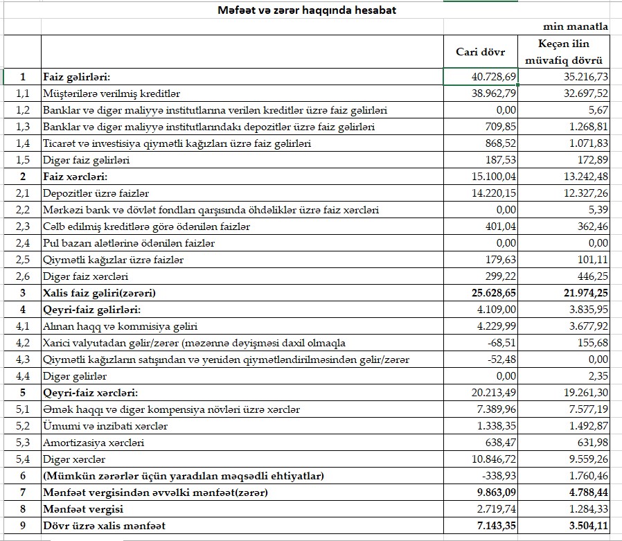 2024-cü ilin 1-ci rübünün yekununda "Bank of Baku"nun əməliyyat mənfəəti 6 milyon 550 min manat ikən, 2025-ci ilin 1-ci rübündə 9 milyon 525 min manat təşkil edib. Həmçinin, mümkün zərərlər üçün yaradılan məqsədli ehtiyatlardan azad olan 339 min manat mənfəətə əlavə olunub (ötən ilin eyni dövründə Bank əməliyyat mənfəətindən 1 milyon 760 min manat ehtiyata ayırmışdı). Beləliklə, həm gəlirlərin artması, həm də ehtiyatdan qayıdan məbləğ "Bank of Baku"nun xalis mənfəətinin 2 dəfə artmasını təmin edib.