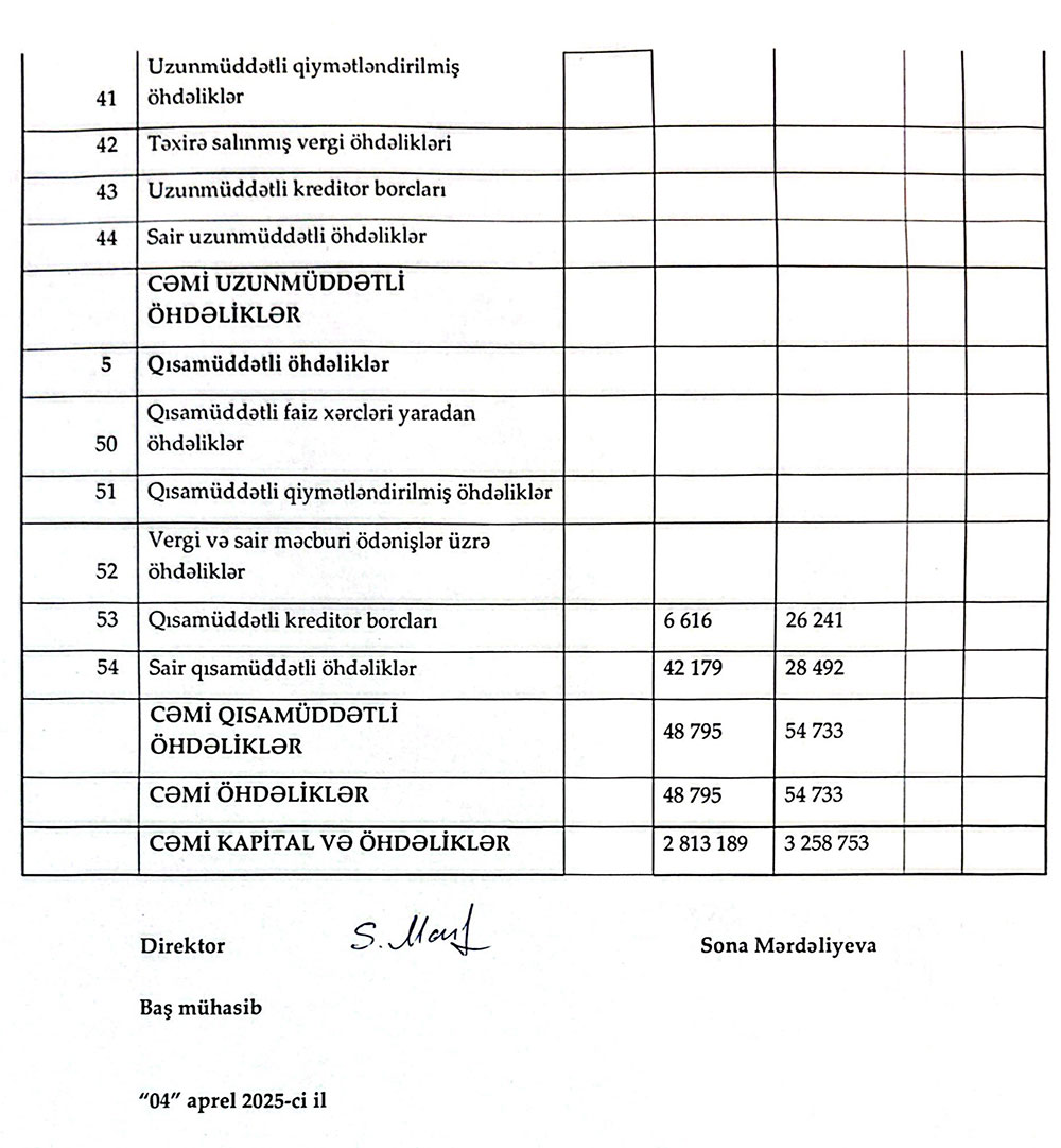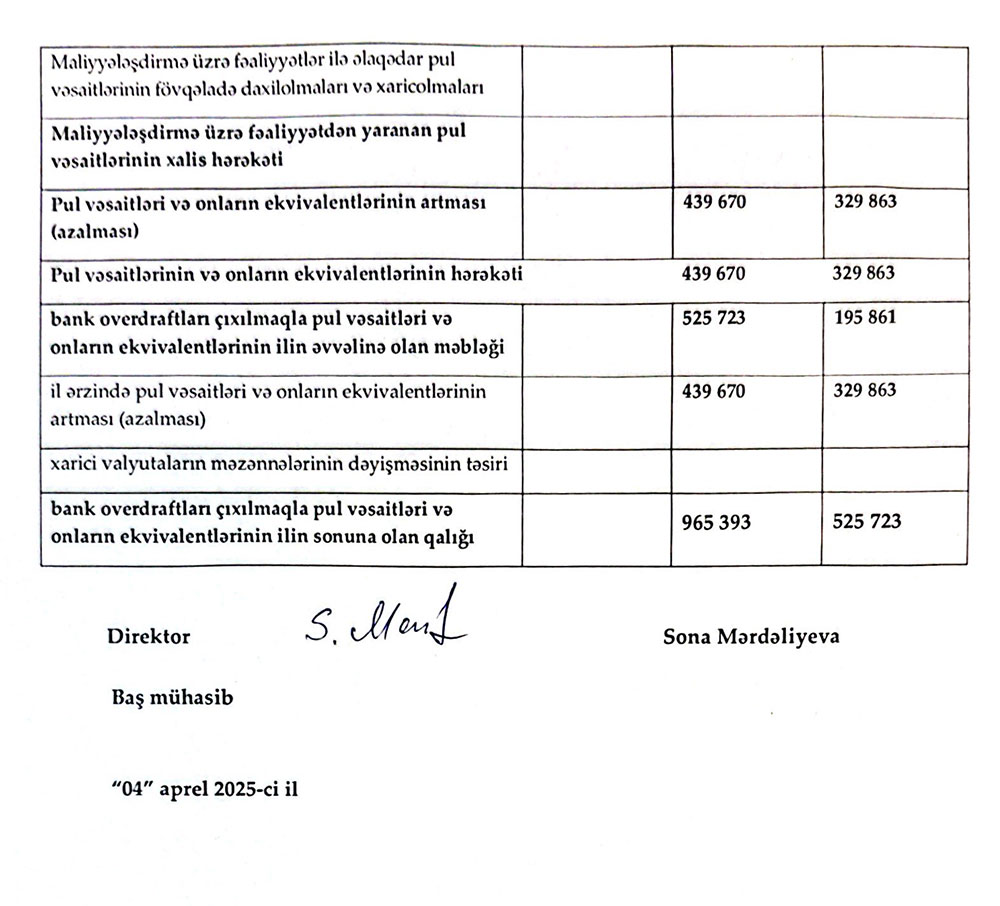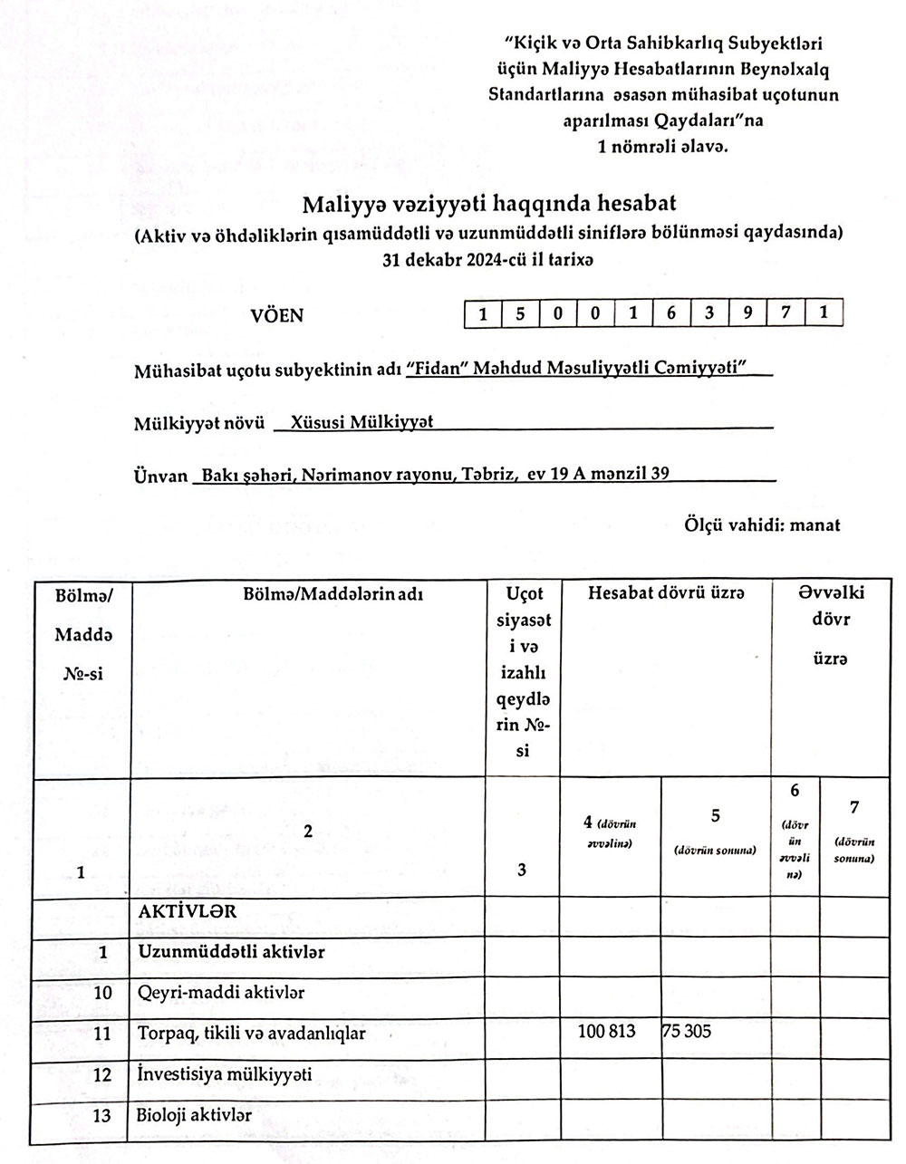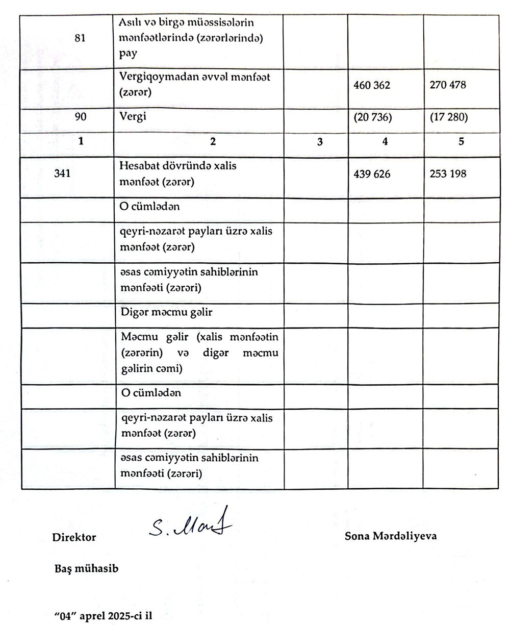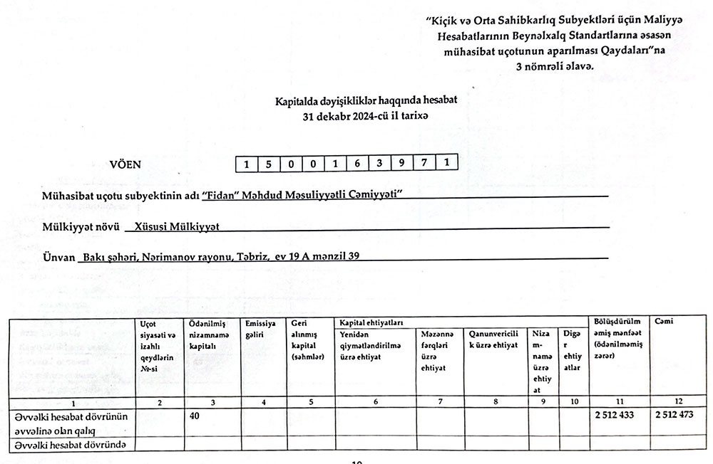 Sərnişindaşıma fəaliyyətilə məşğul olan "FİDAN" MMC-nin 31 dekabr 2024-cü il tarixində bitən il üzrə maliyyə hesabatları.