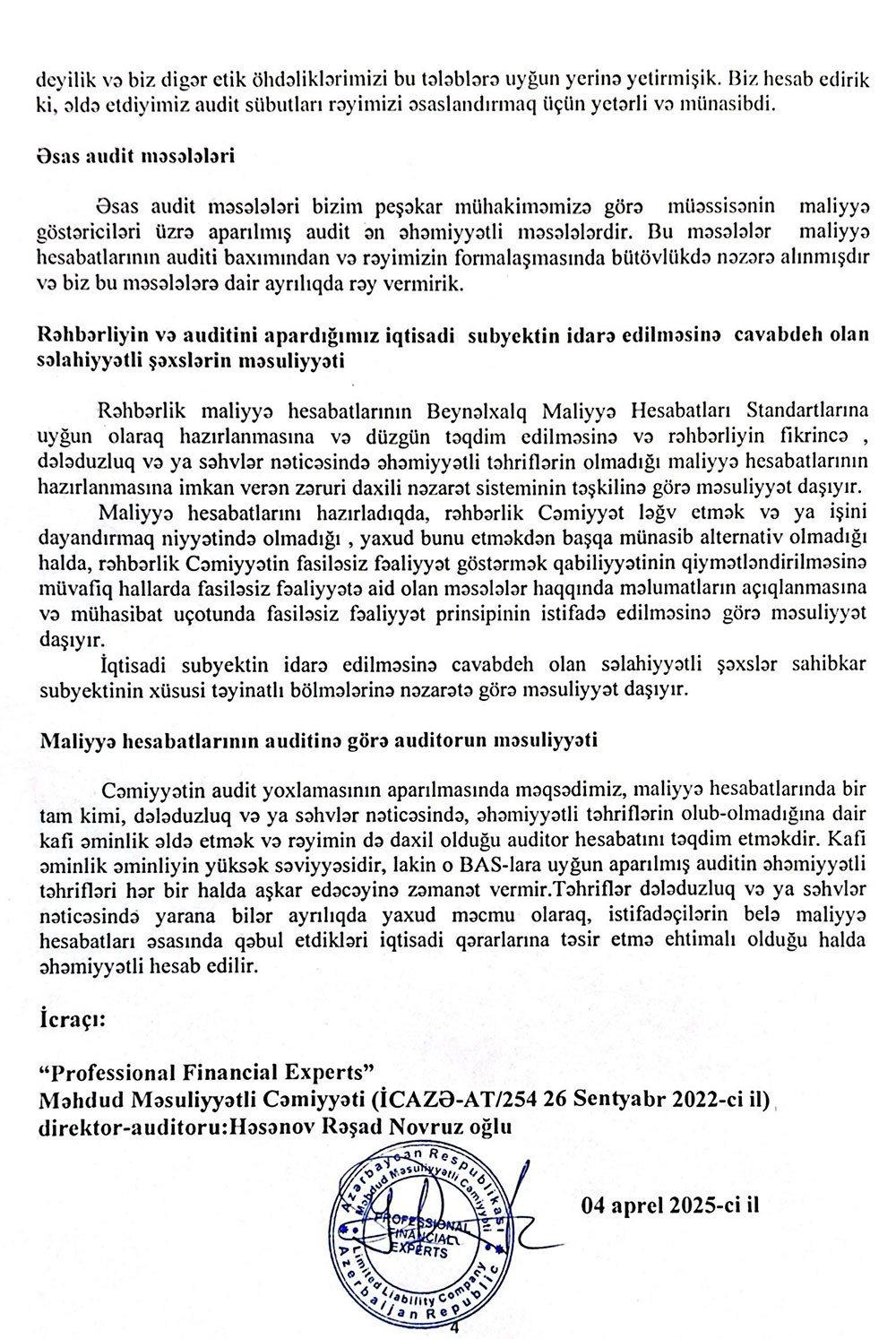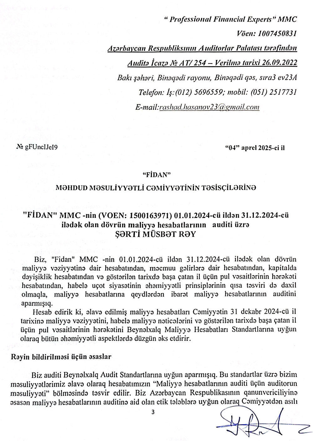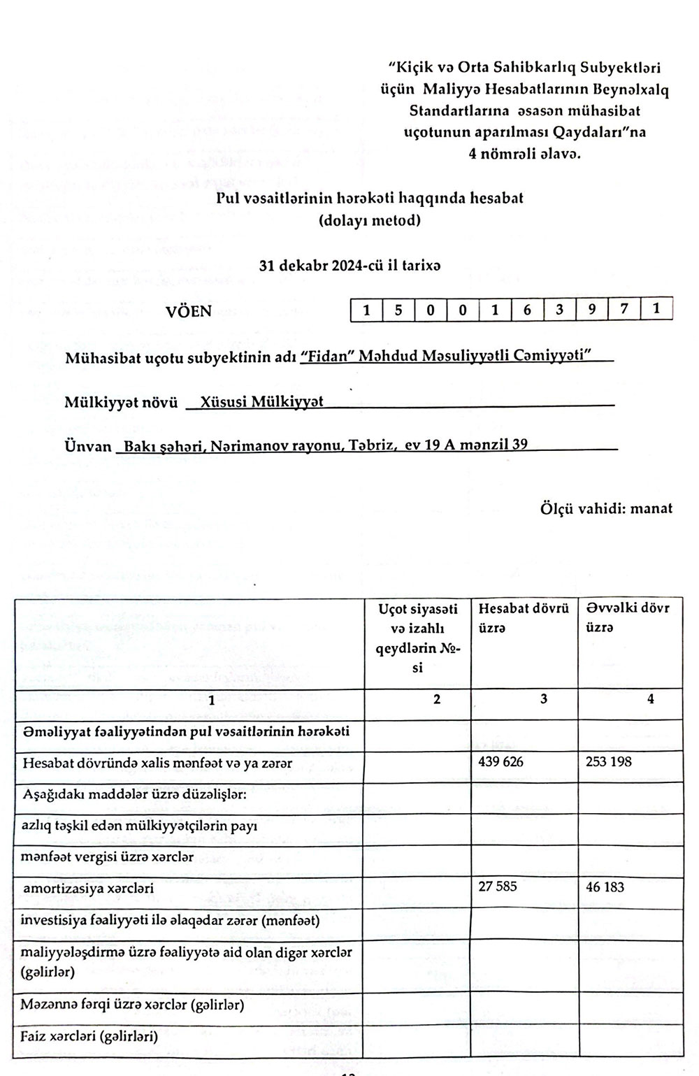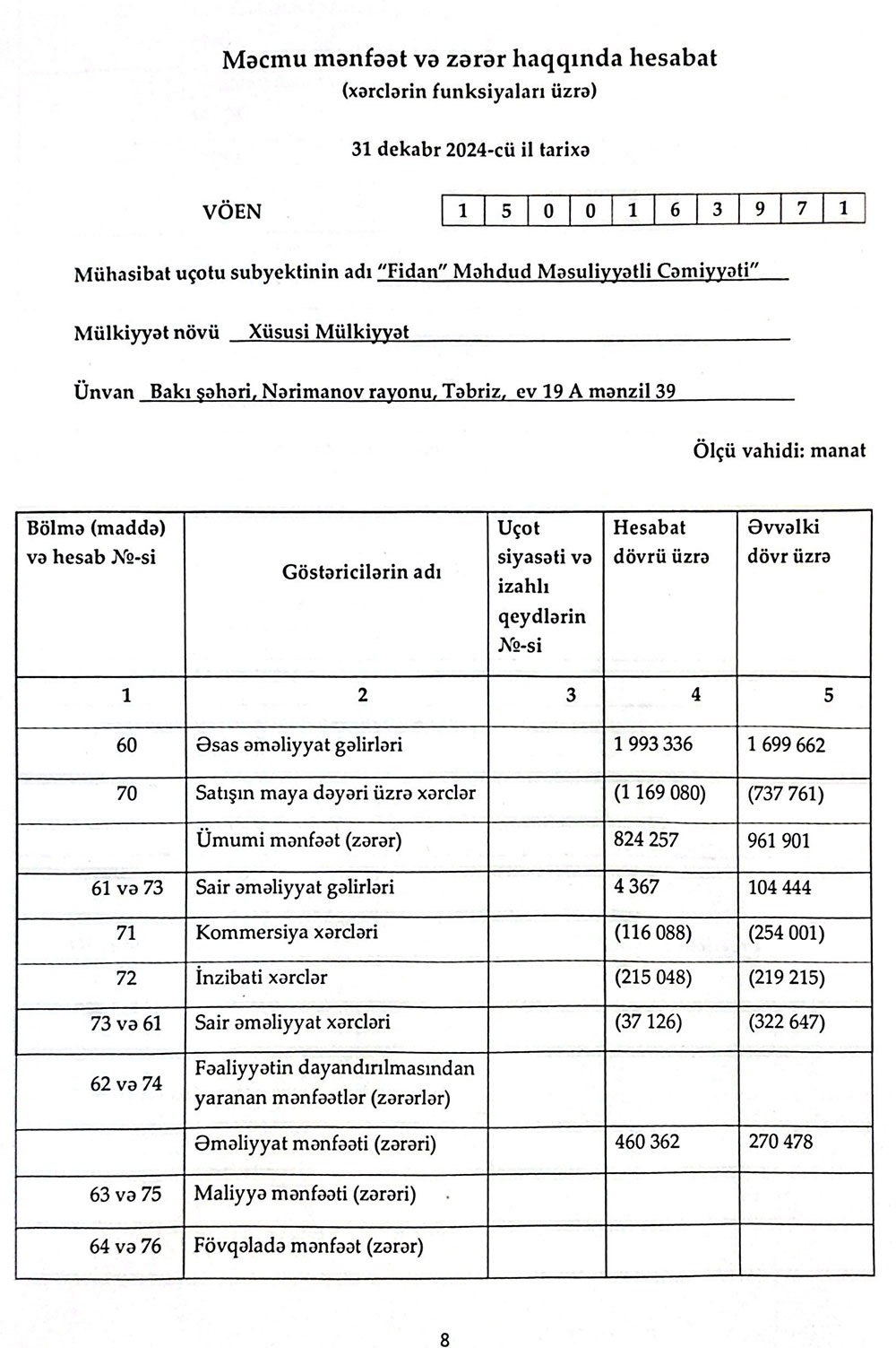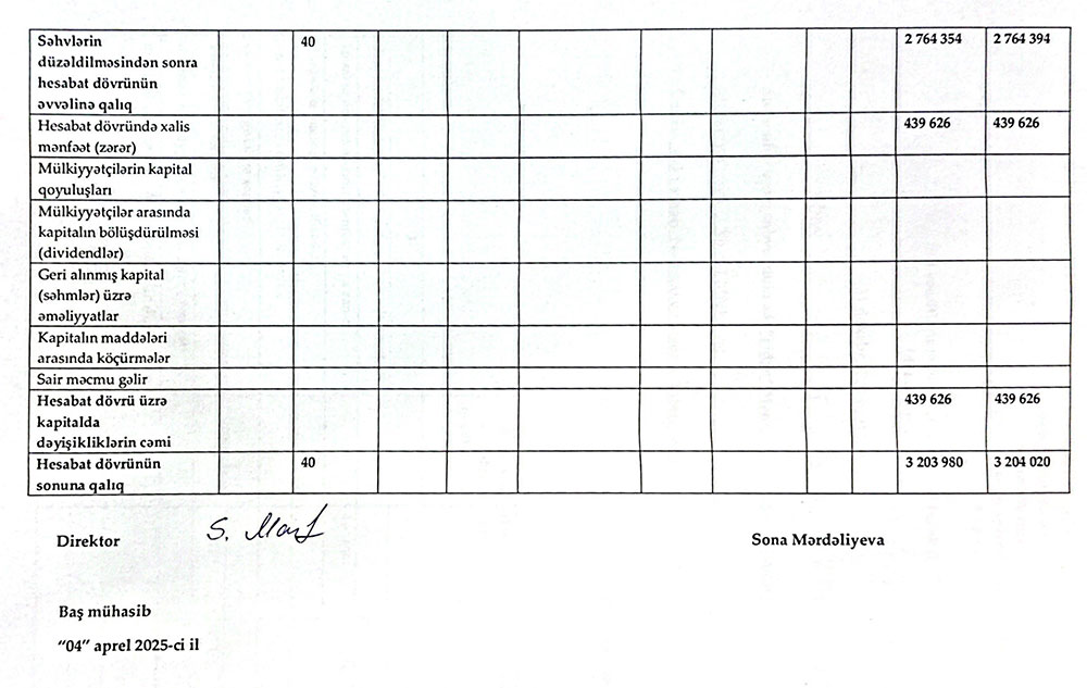 Sərnişindaşıma fəaliyyətilə məşğul olan "FİDAN" MMC-nin 31 dekabr 2024-cü il tarixində bitən il üzrə maliyyə hesabatları.