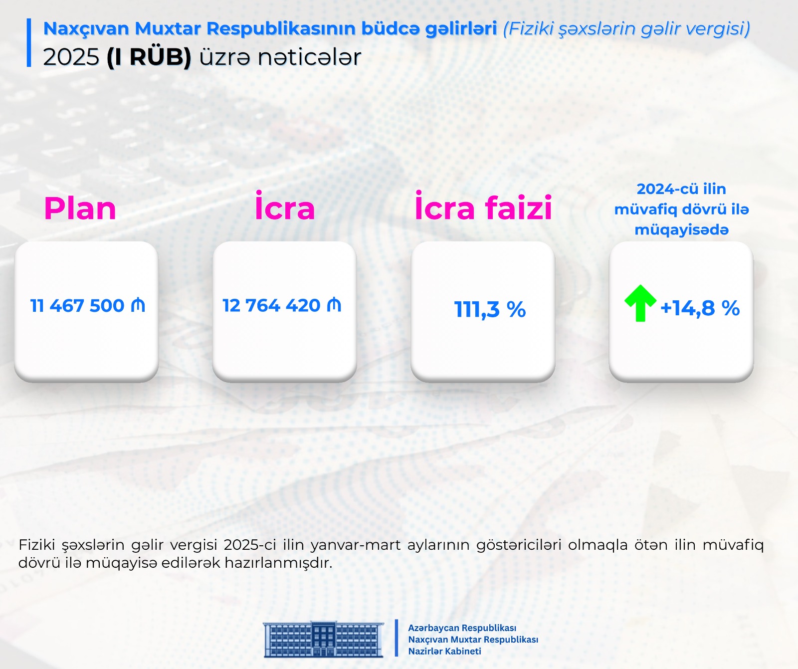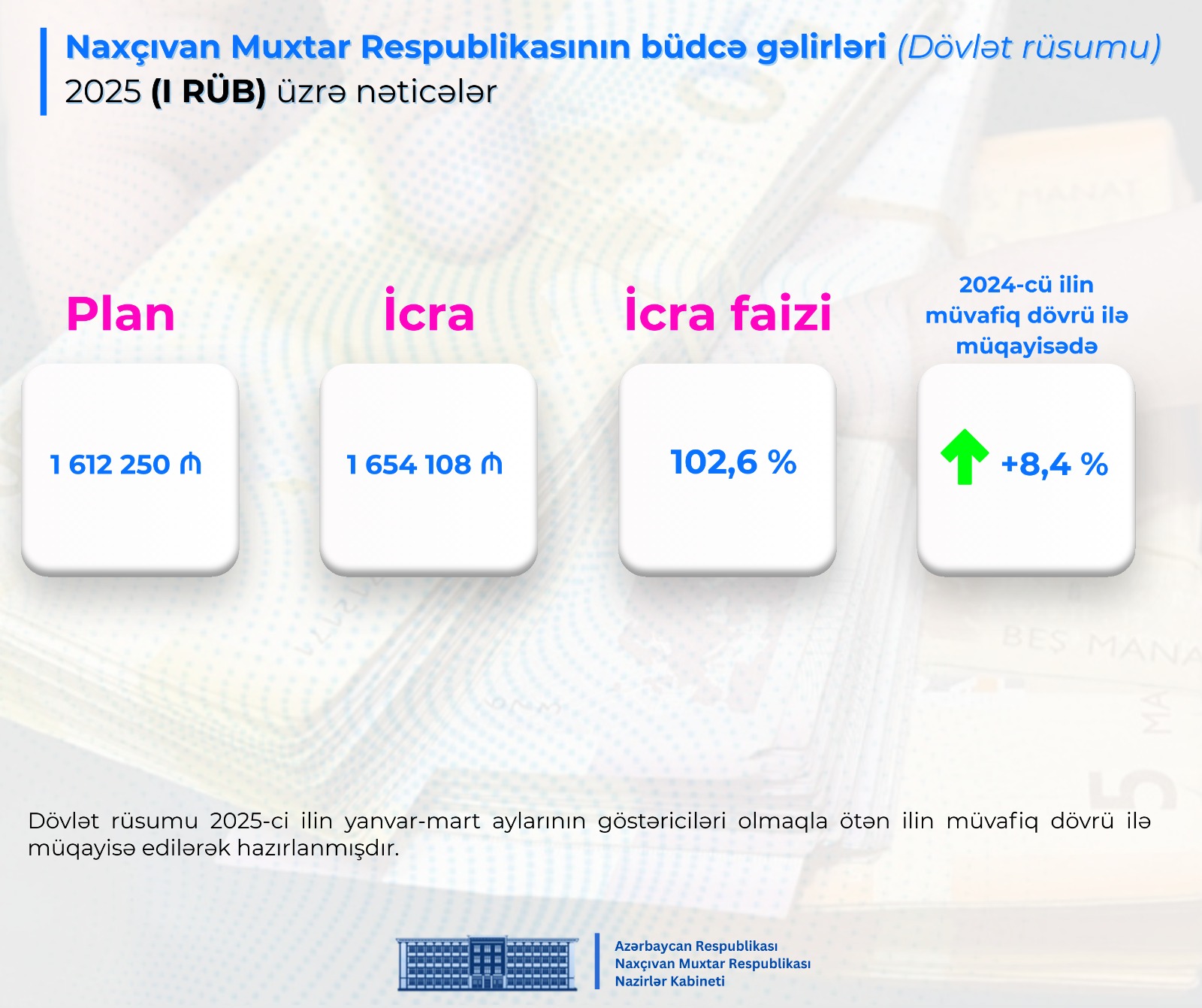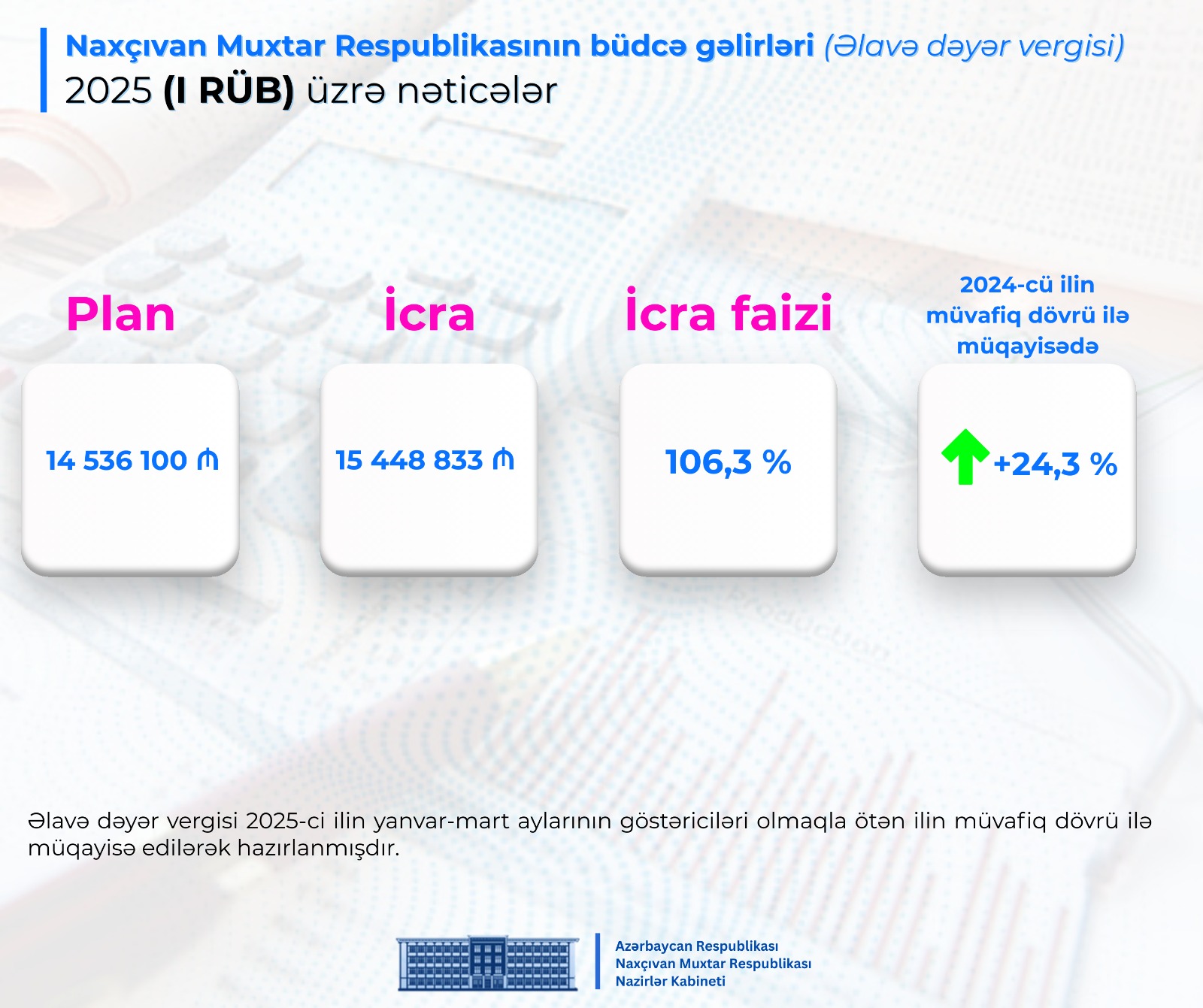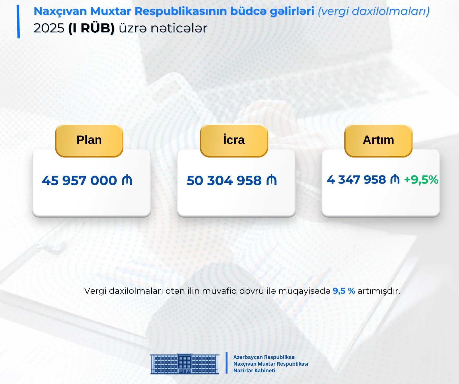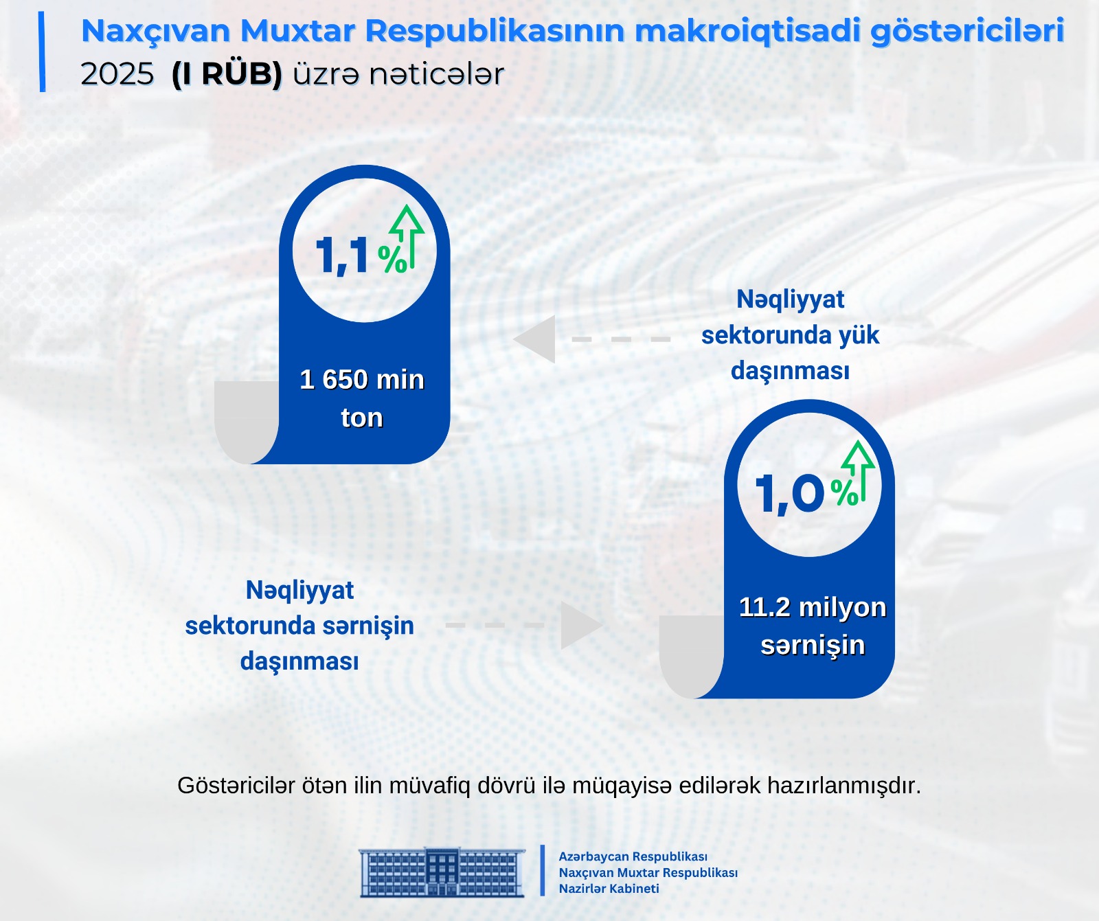 Naxçıvan Muxtar Respublikasının sosial-iqtisadi inkişafına dair I rübün nəticələri üzrə göstəricilər açıqlanıb.