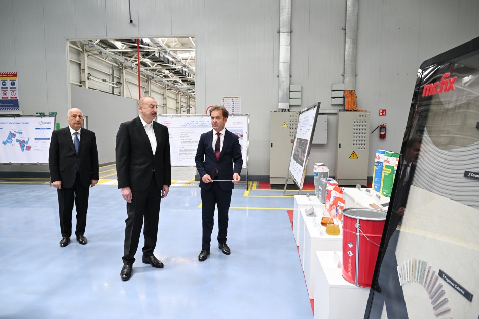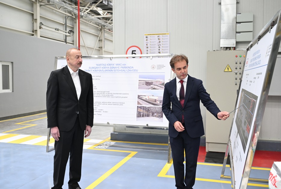 Tikinti kimyəvilərinin istehsalı zavodu ilə bağlı bildirilib ki, “Kartaş Kimya” MMC-yə 2022-ci ilin iyulunda Sumqayıt Kimya Sənaye Parkının rezidenti statusu verilib. Təməli 2023-cü ildə dövlətimizin başçısı tərəfindən qoyulan zavodun tikintisi üçün 2,5 hektar ərazi ayrılıb.