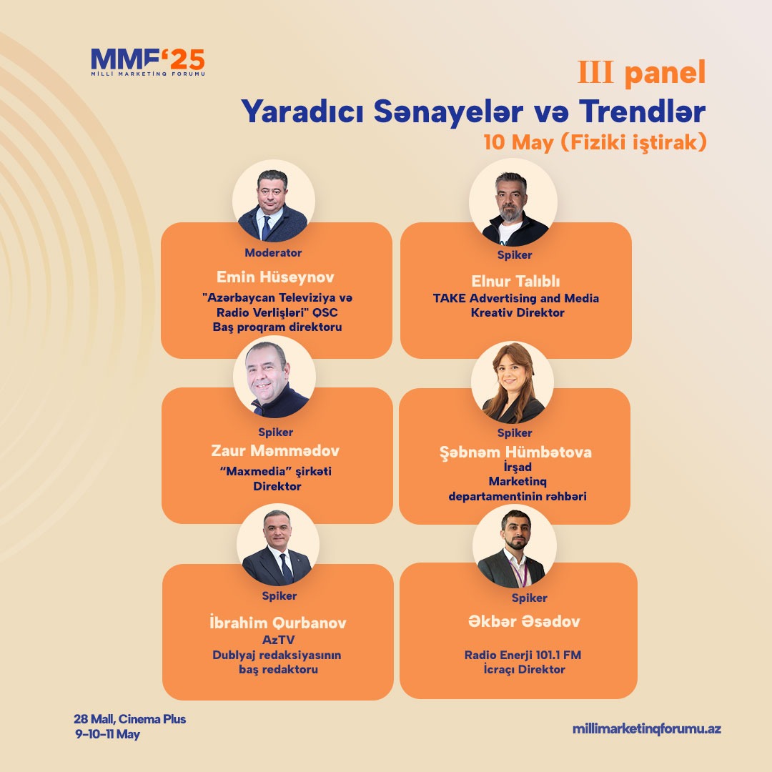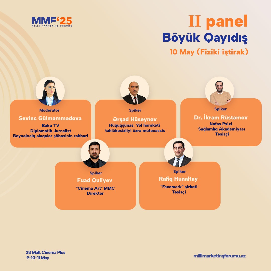 Forum çərçivəsində müzakirə olunacaq mövzular, marketinq sahəsinin hazırkı çağırışları və gələcək inkişaf istiqamətləri baxımından aktual olmaqla yanaşı, iştirakçılara praktik bilik və ilham verəcək dəyərli çıxışlar təqdim edəcək.