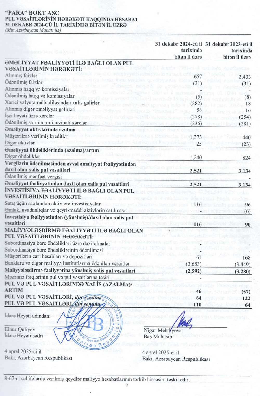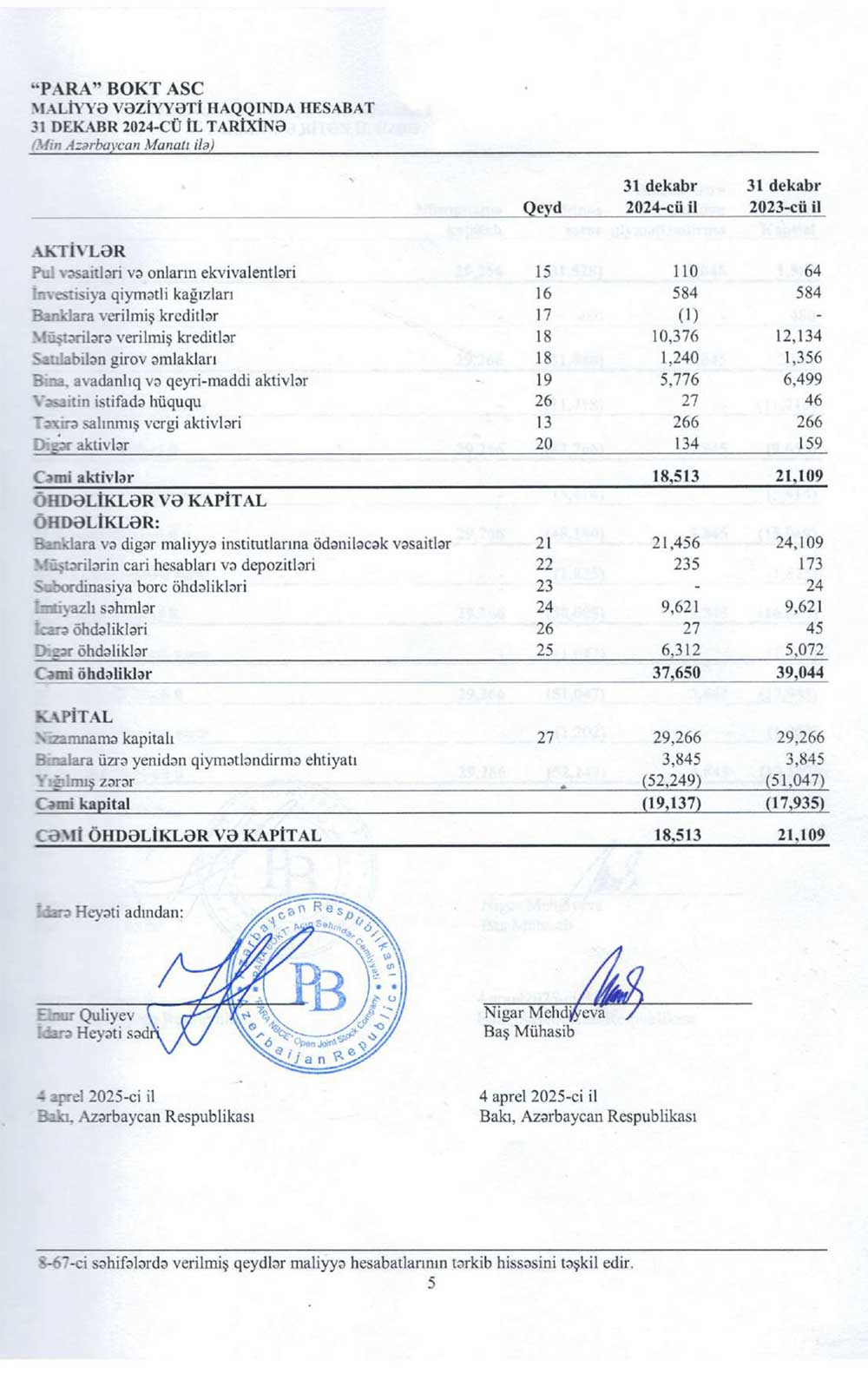 31 dekabr 2024-cü il tarixində bitən il üzrə “Para BOKT” ASC-nin maliyyə göstəriciləri ilə daha ətraflı buradan tanış ila bilərsiniz.