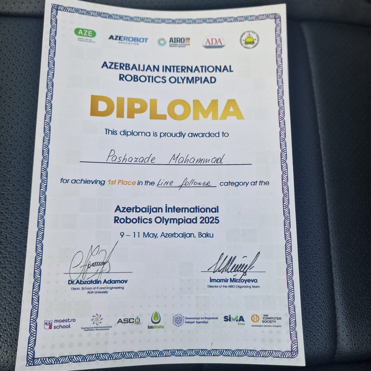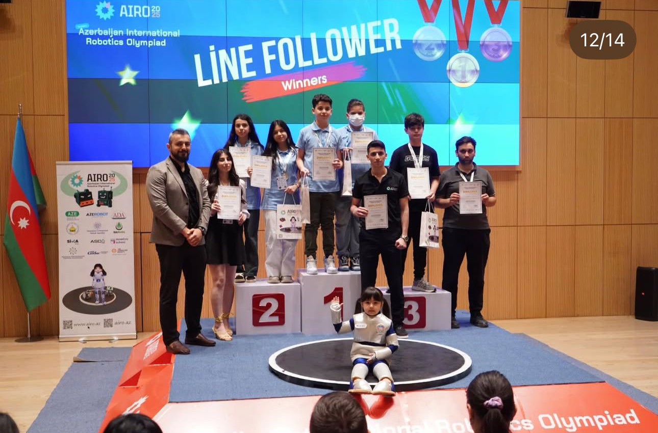 “AİRO 2025”də 282 iştirakçı 7 müxtəlif kateqoriya üzrə 150 robot layihəsi təqdim edib. Yarışmada Məhəmməd Paşazadə "Line Follower" kateqoriyasında 1-ci yerə layiq görülüb.Gənclər və İdman Nazirliyi, ADA Universiteti, "AzeRobot Education", ASCO, İRİA, Bakı Abadlıq Xidməti, Maestro School, AKTA və SİMA kimi tərəfdaşların dəstəyi ilə ADA Universitetində “Azerbaijan International Robotics Olympiad – AİRO 2025” keçirilib.