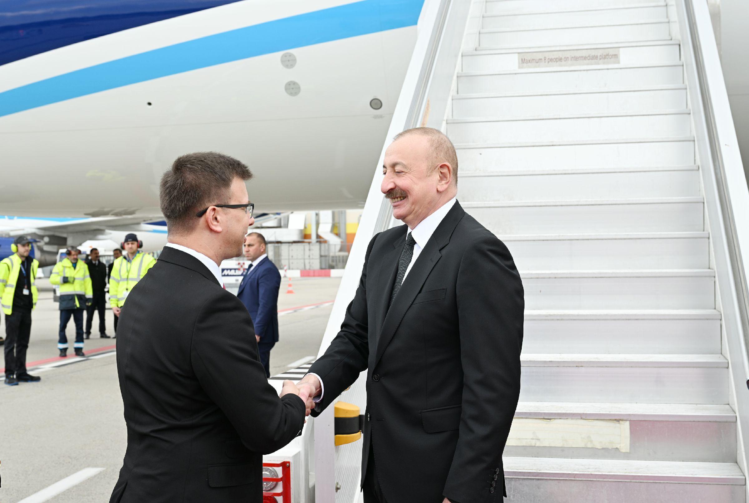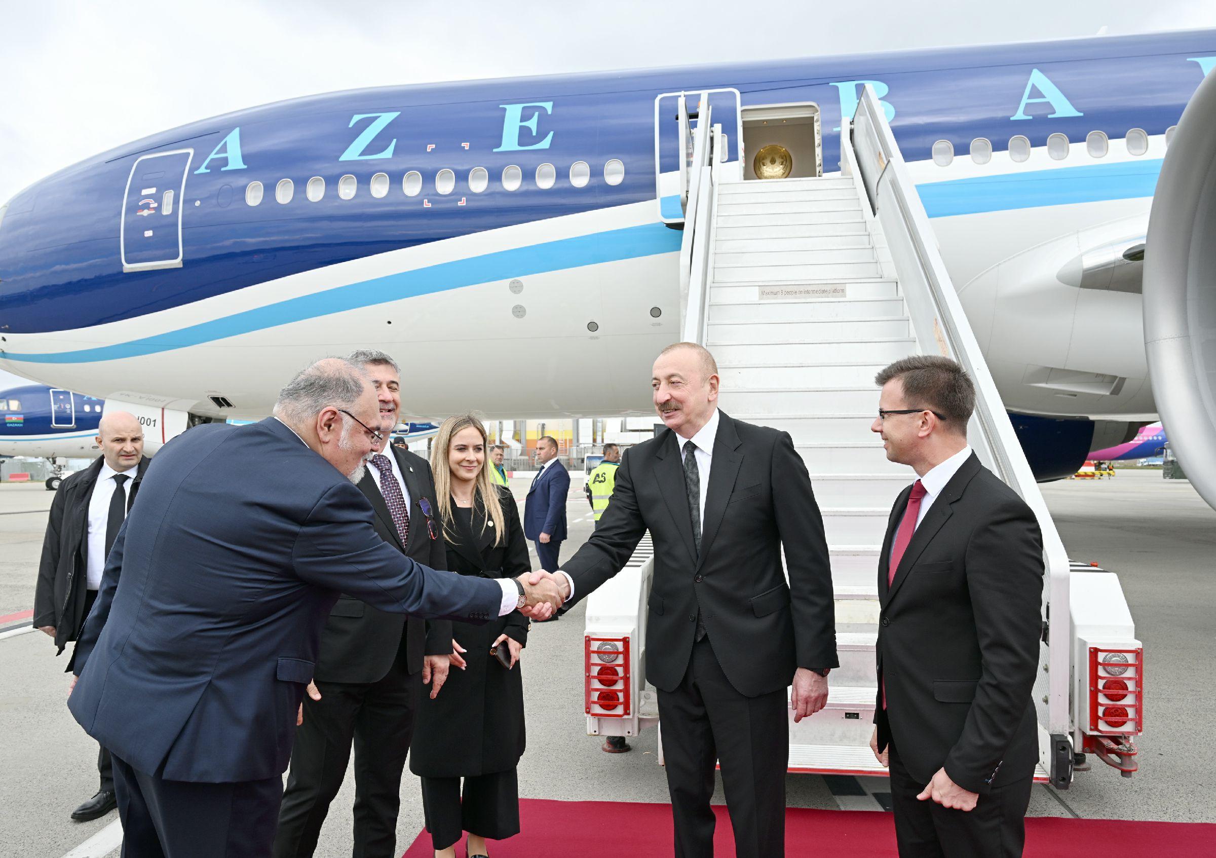 Azərbaycan Prezidentini Macarıstanın Avropa İttifaqı məsələləri üzrə naziri Yanoş Boka və digər rəsmi şəxslər qarşıladılar.