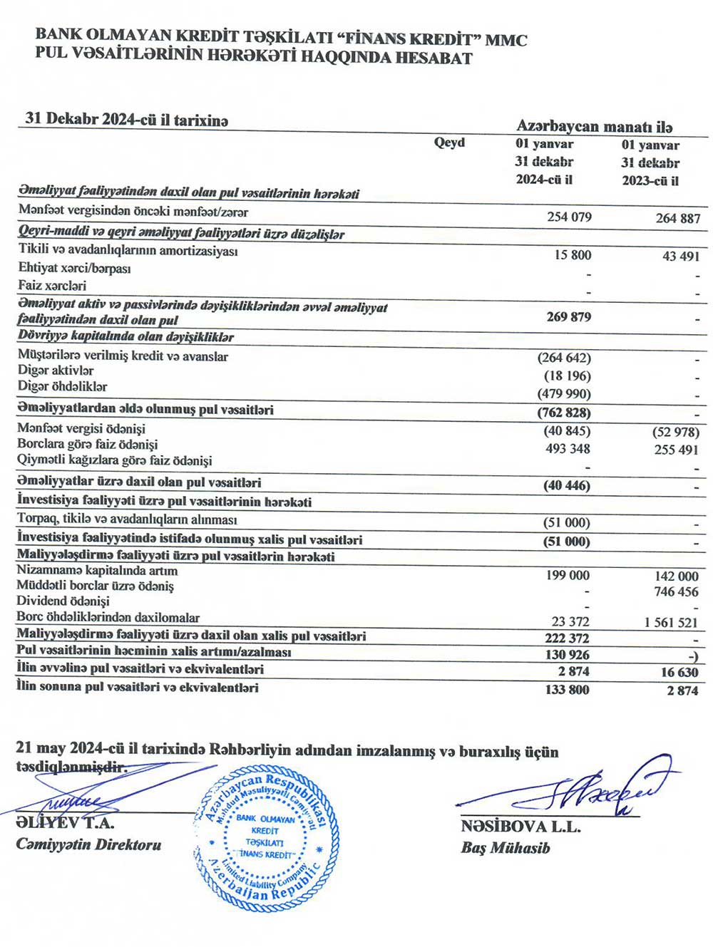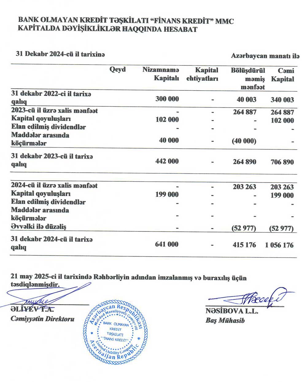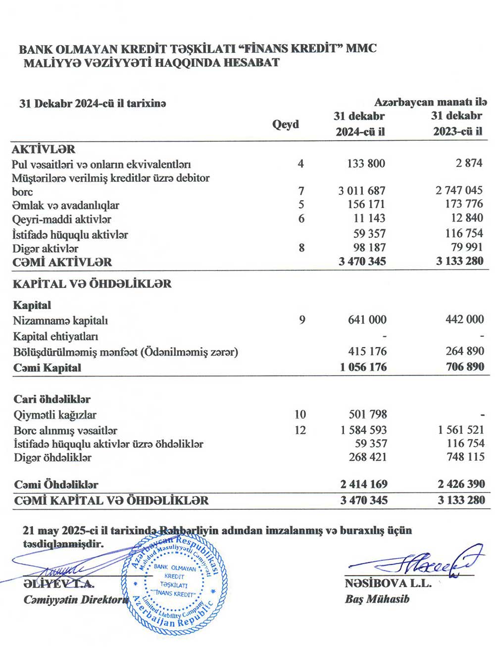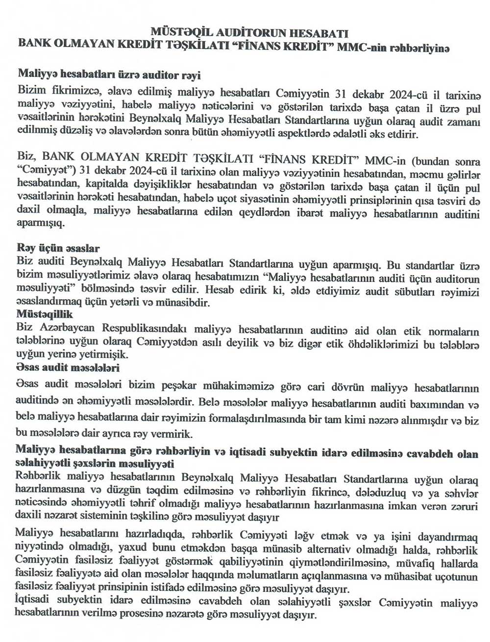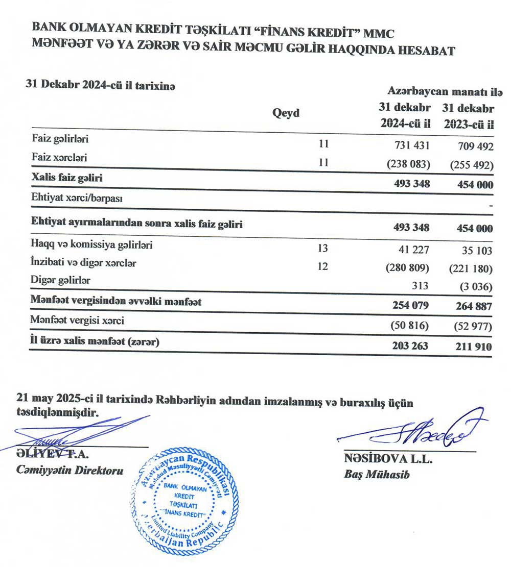 Bank Olmayan Kredit Təşkilatı "Finans Kredit" MMC-nin 31 dekabr 2024-cü il tarixində başa çatmış il üzrə maliyyə hesabatları - ƏTRAFLI