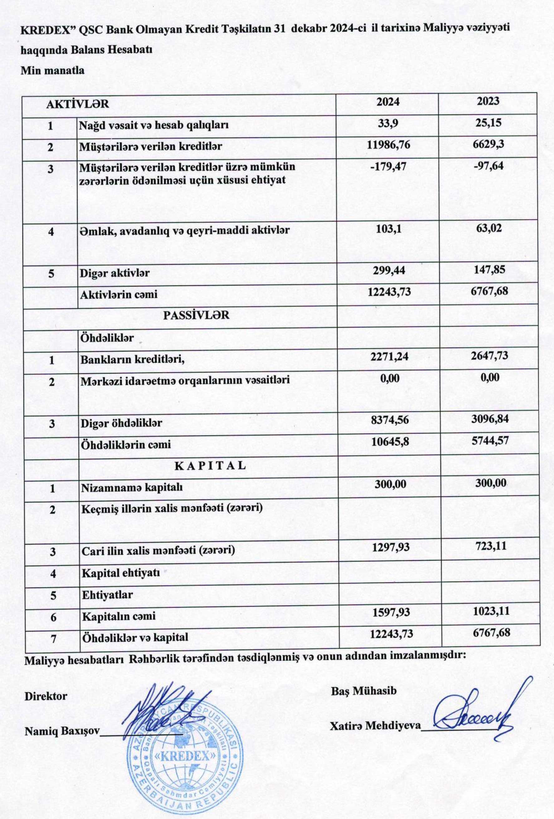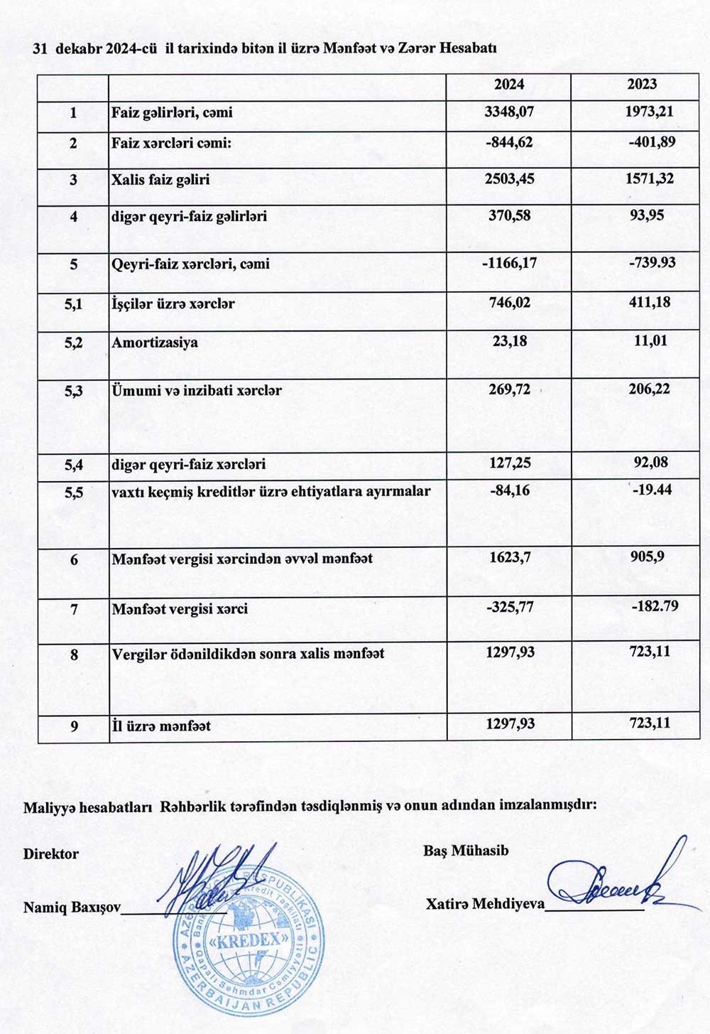 BOKT “KREDEX”in 2024-cü il üzrə maliyyə hesabatları - KƏSKİN BÖYÜYÜB VƏ MƏNFƏƏTİ ARTIB