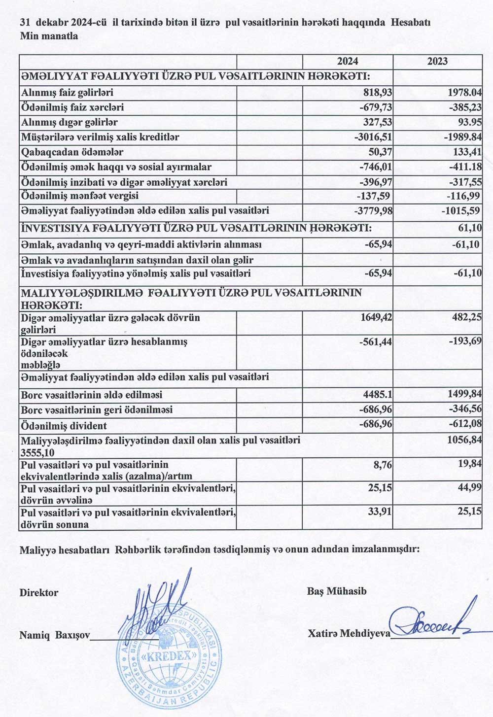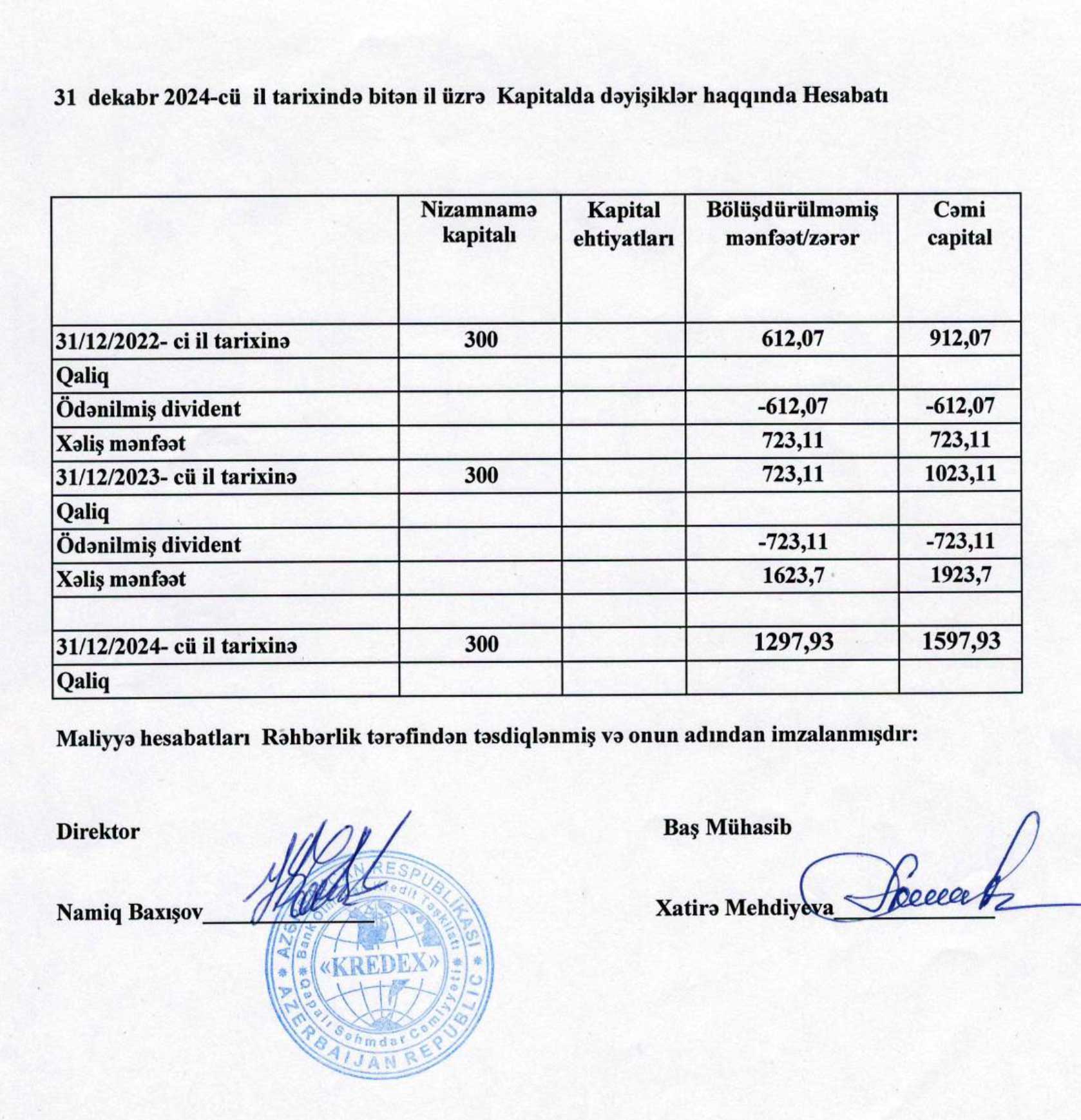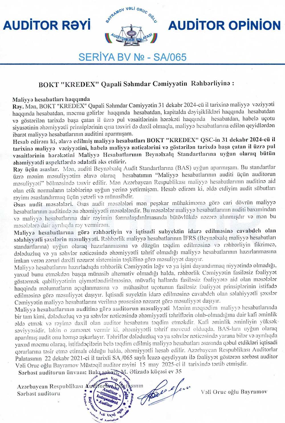 BOKT “KREDEX” QSC 31 dekabr 2024-cü il tarixində başa çatmış il üzrə maliyyə və kənar audit hesabatları - ƏTRAFLI