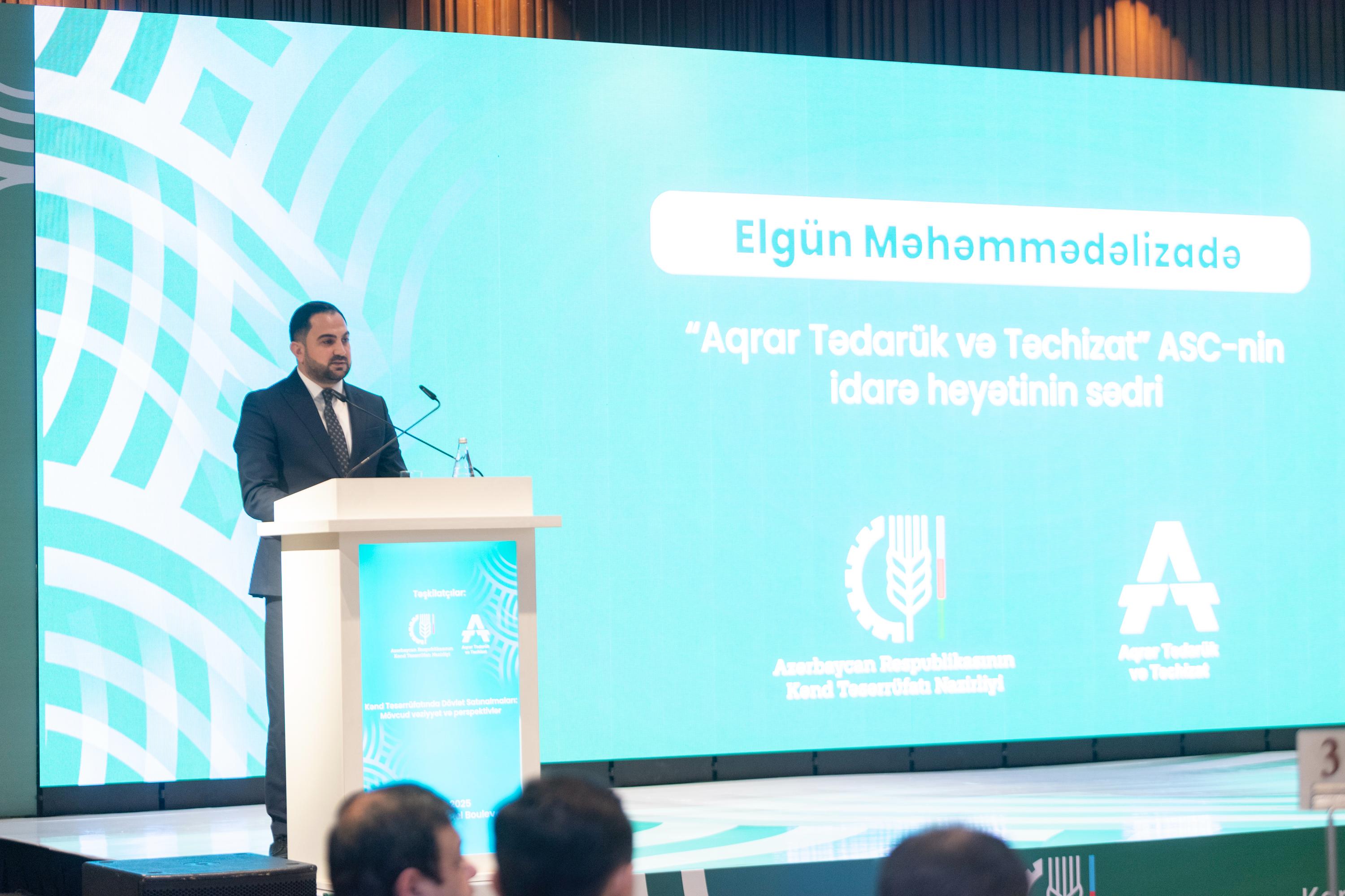 Çıxış edən “Aqrar Tədarük və Təchizat” ASC-nin idarə heyətinin sədri Elgün Məhəmmədəlizadə isə qeyd edib ki, Kənd təsərrüfatı sahəsində dövlət satınalmaları yalnız texniki məsələ deyil, eyni zamanda strateji planlaşdırma və milli inkişafın təmin olunması vasitəsidir.
